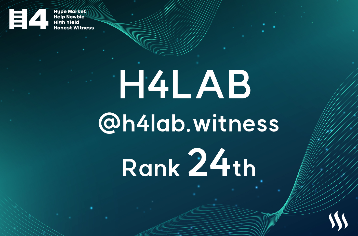 H4LAB(@h4lab.witness) 증인 계정이 @rme 팀의 증인 투표를 받게 되면서 증인 순위 25위를 달성하게되었습니다!