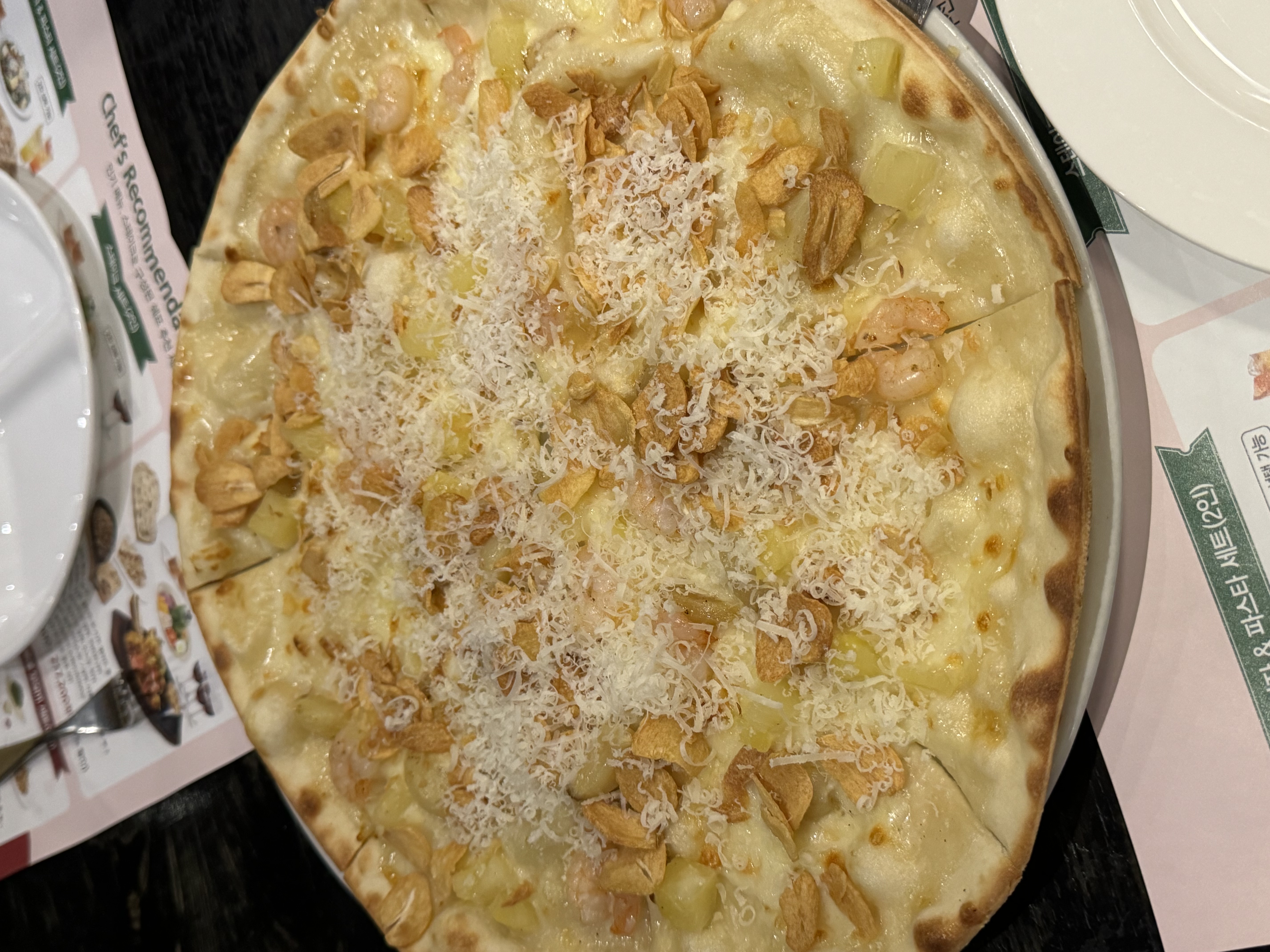 갈릭 스노잉 피자는 항상 필수로 시키는데 파인애플이 들어있어서 호불호가 있을 것같아요 ㅋㅋ