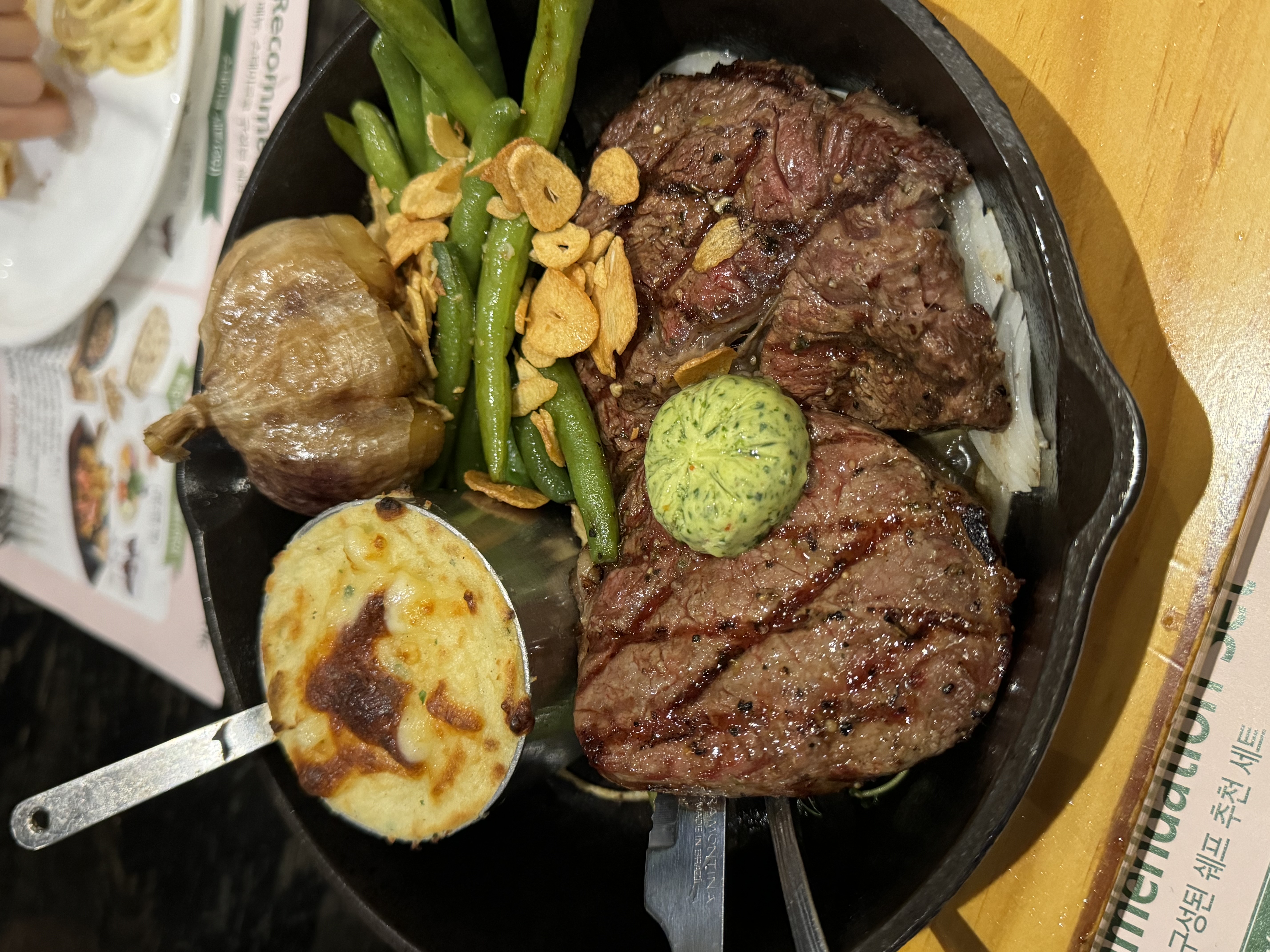 허브 립아이 스테이크는 독특한 허브버터가 올라가있어 녹여서 스테이크에 발라 먹으니 색다른 맛이였어요!