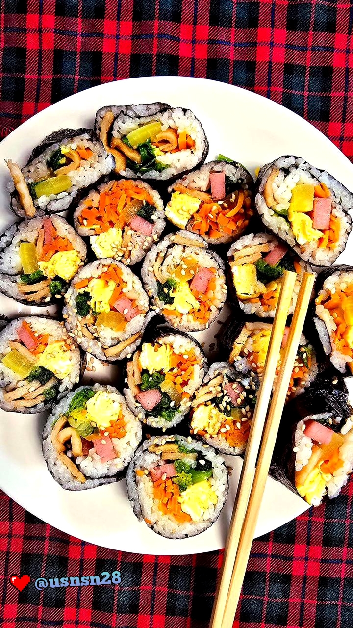 맛있는 홈메이드 할랄 김밥이 완성되었습니다. 신선하게 즐기세요 😊