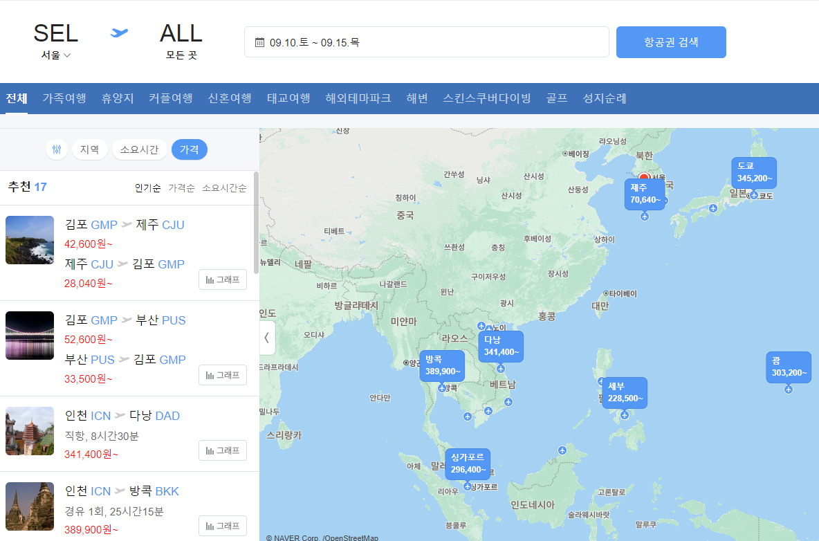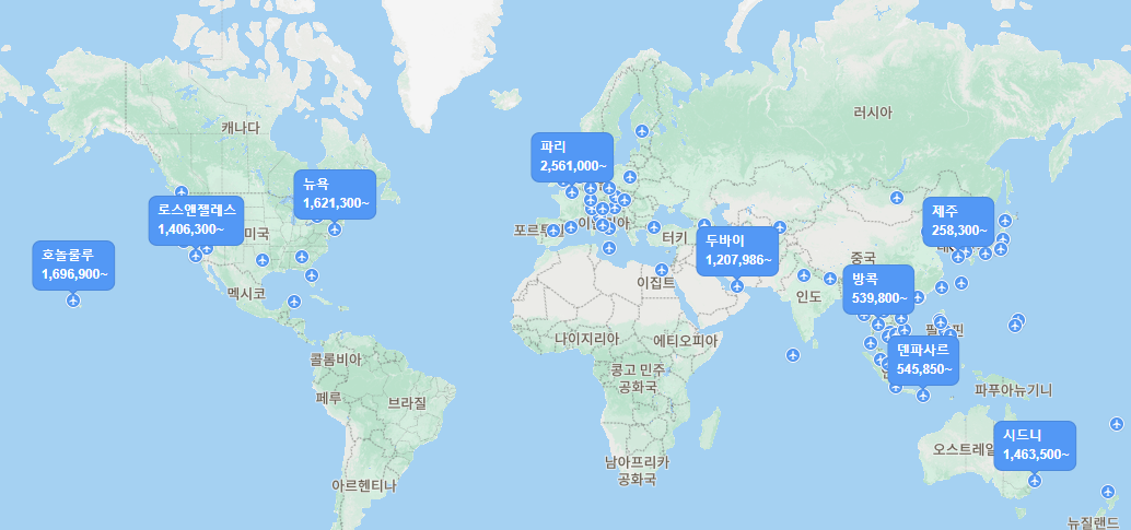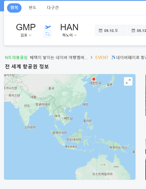네이버 항공권의 페이지 아래에 보면 지도가 있습니다. 지도를 여시면 좀더 편하게 확인이 가능하십니다.