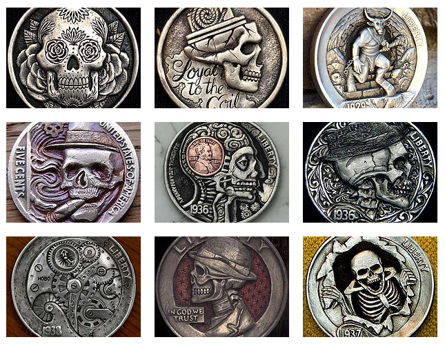 Hobo Nickels are a beautiful art form made from minted nickel coins. Miniature bas relief sculptures were hand carved into the coins. US nickels were a popular medium for this art; their size, thickness, and relative metal softness made for the perfect medium. They remind me of crypto currencies. The idea of taking the concept of money and improving upon it.