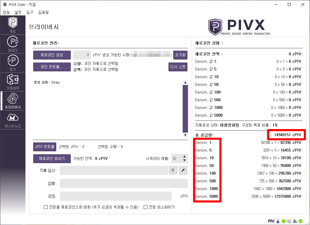 zPIV 는 익명성을 추구하기 위해서 denom(덩이)으로 각 zPIV 을 분류합니다.