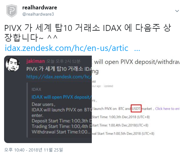 12월 4일 IDAX 에 상장합니다.