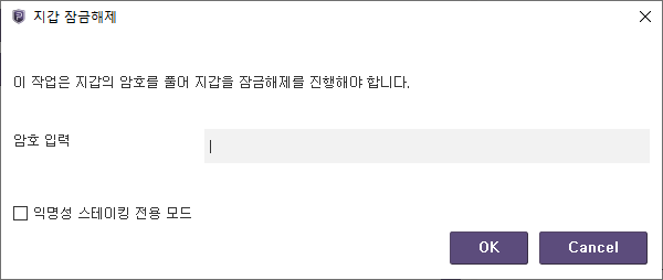 지갑을 최초 만들 때 썼던 암호 입력하시면 됩니다.
