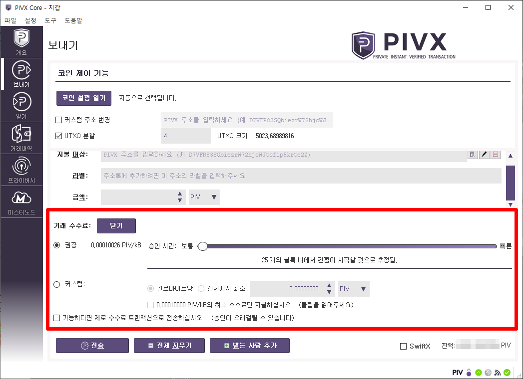 제 zPIV 이면 좋겠지만, 그 위에 있는 제로코인 잔액이 현재 제 zPIV 잔고를 뜻하고요(네, 아무것도 없습니다.)