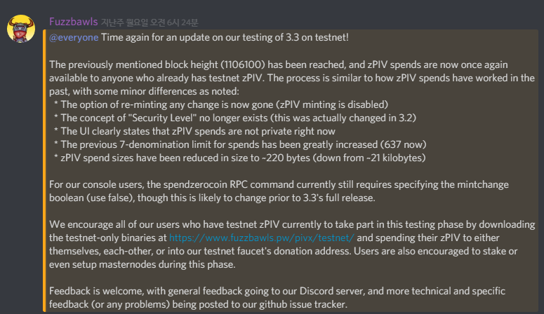 PIVX Korea 업데이트 19. 05. 30.