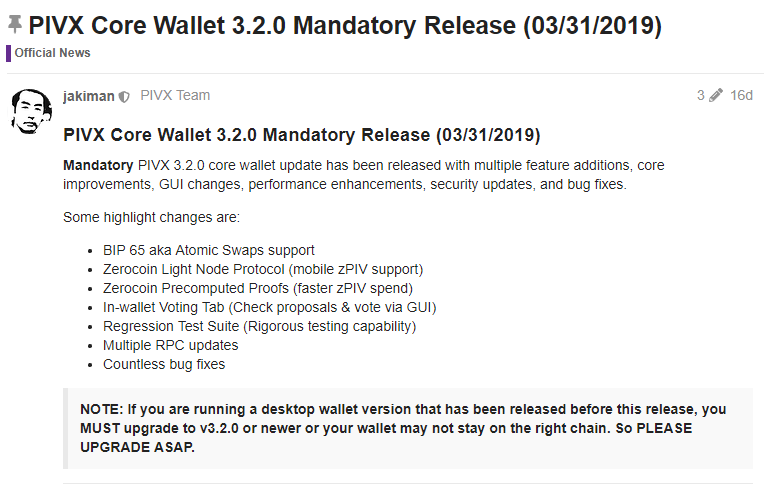 https://forum.pivx.org/t/pivx-core-wallet-3-2-0-mandatory-release-03-31-2019/4920