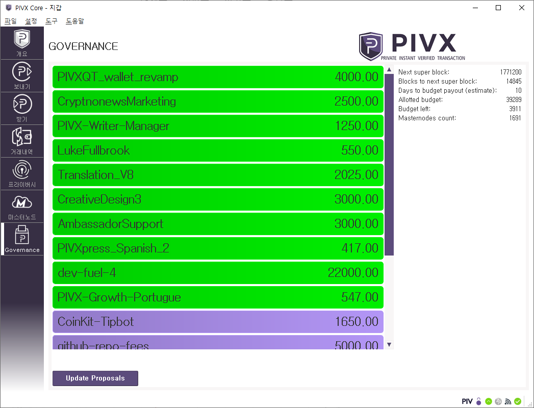 그래도 아래 사진 같은 거버넌스 창의 등장은 피벡스 자체의 거버넌스의 흐름을 이해하시는데 큰 도움이 될 겁니다.