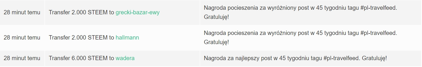 Dziękuje wszystkim głosującym (@michalx2008x, @rozku, @pingys, @grecki-bazar-ewy, @verticallife, @lesiopm, @wadera, @ptaku i @jocieprosza), to Waszymi głosami został wybrany najlepszy post tygodnia tagu #pl-travelfeed oraz dwa wyróżnione posty.