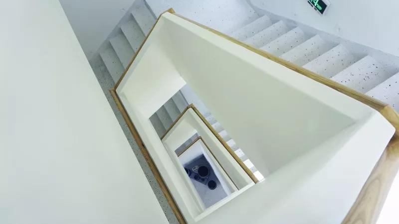 On the steps, the small building is like a beautiful woman, with a light makeup.