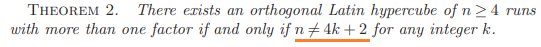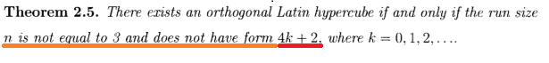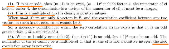 A necessary condition for the existence of the zero correlation designs is that m is either an odd number greater than 3, or a multiple of 4. The zero correlation arrays don't exist if the run size of the design is 4k+2, where k is a positive integer.