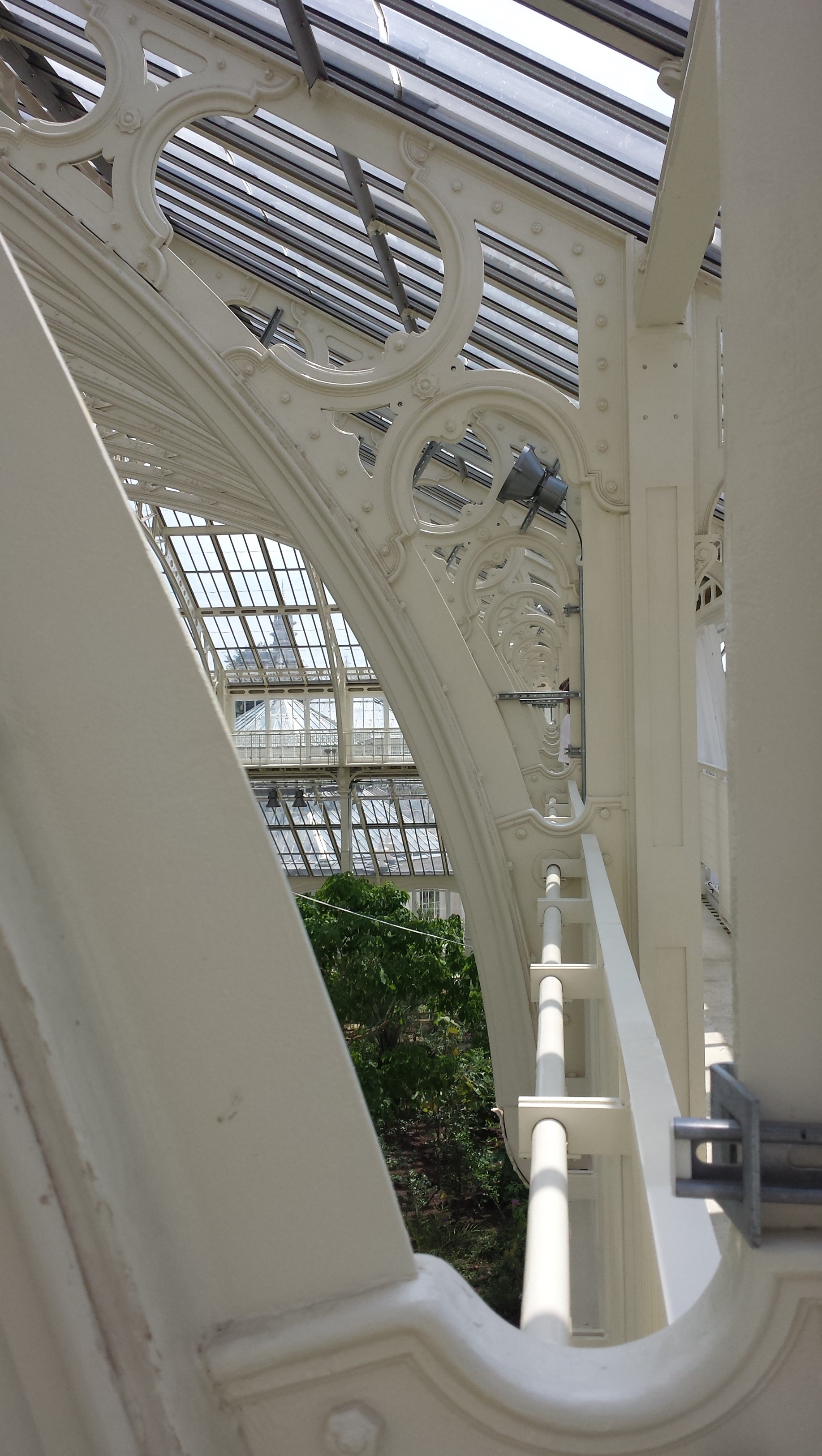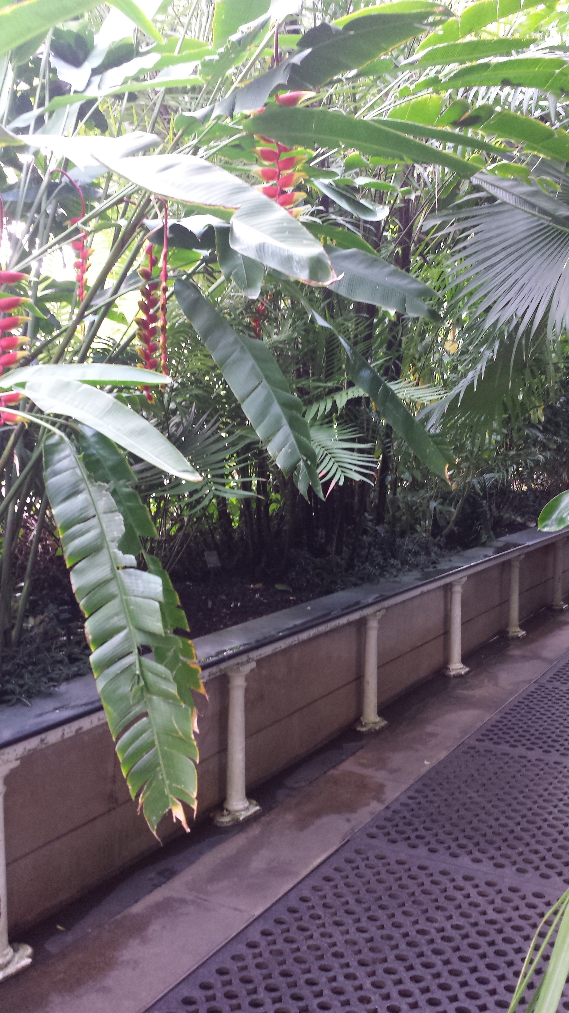 The Palm house is kept warm an moist, with steam being pumped out at regular intervals. It's humid, the day we went, it was 28℃... phew! The floor is delightfully damp, with gutters running along all the walkways for the excess water to drain away.