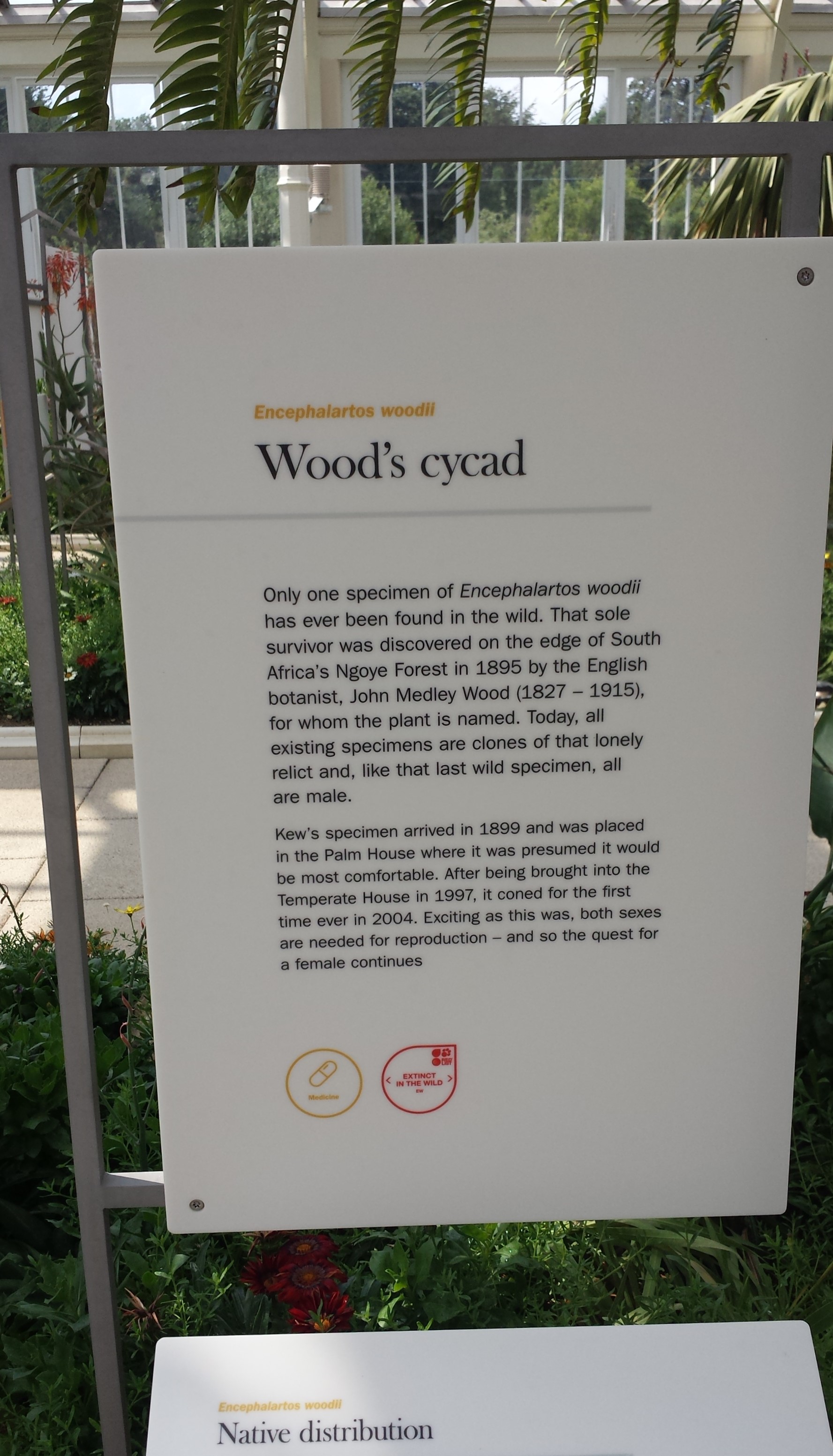 The Temperate House contains over 1500 plant species, including some of the world's rarest and most endangered plants. A great example is the Wood's Cyad.