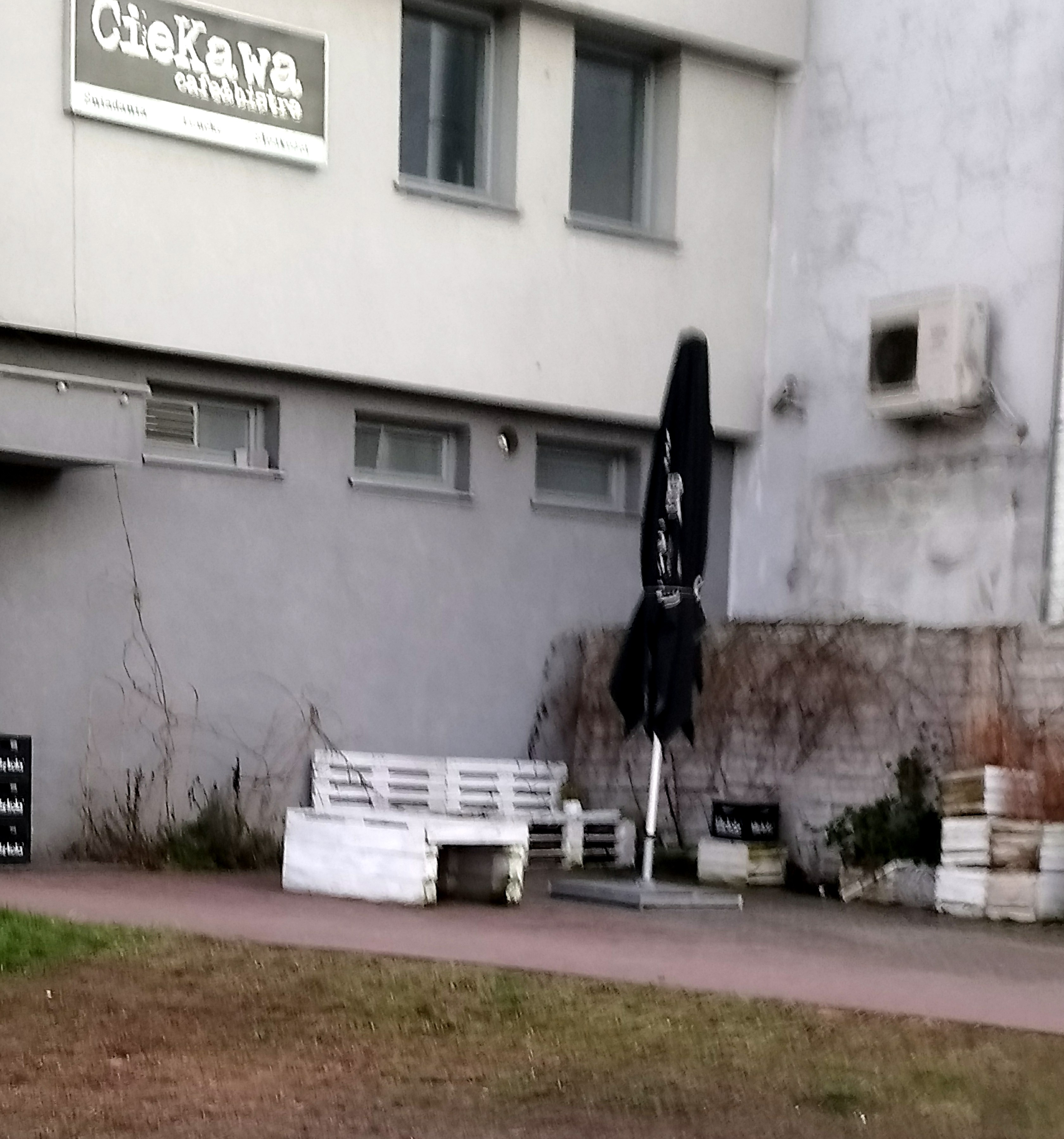A teraz zauważyłam biało - czarny szyld: "CieKawa". Niezbyt szczęśliwe miejsce na pub - wśród szarej, betonowej brzydoty. Do środka mi się nie chciało drapać choć nazwa wabiła.