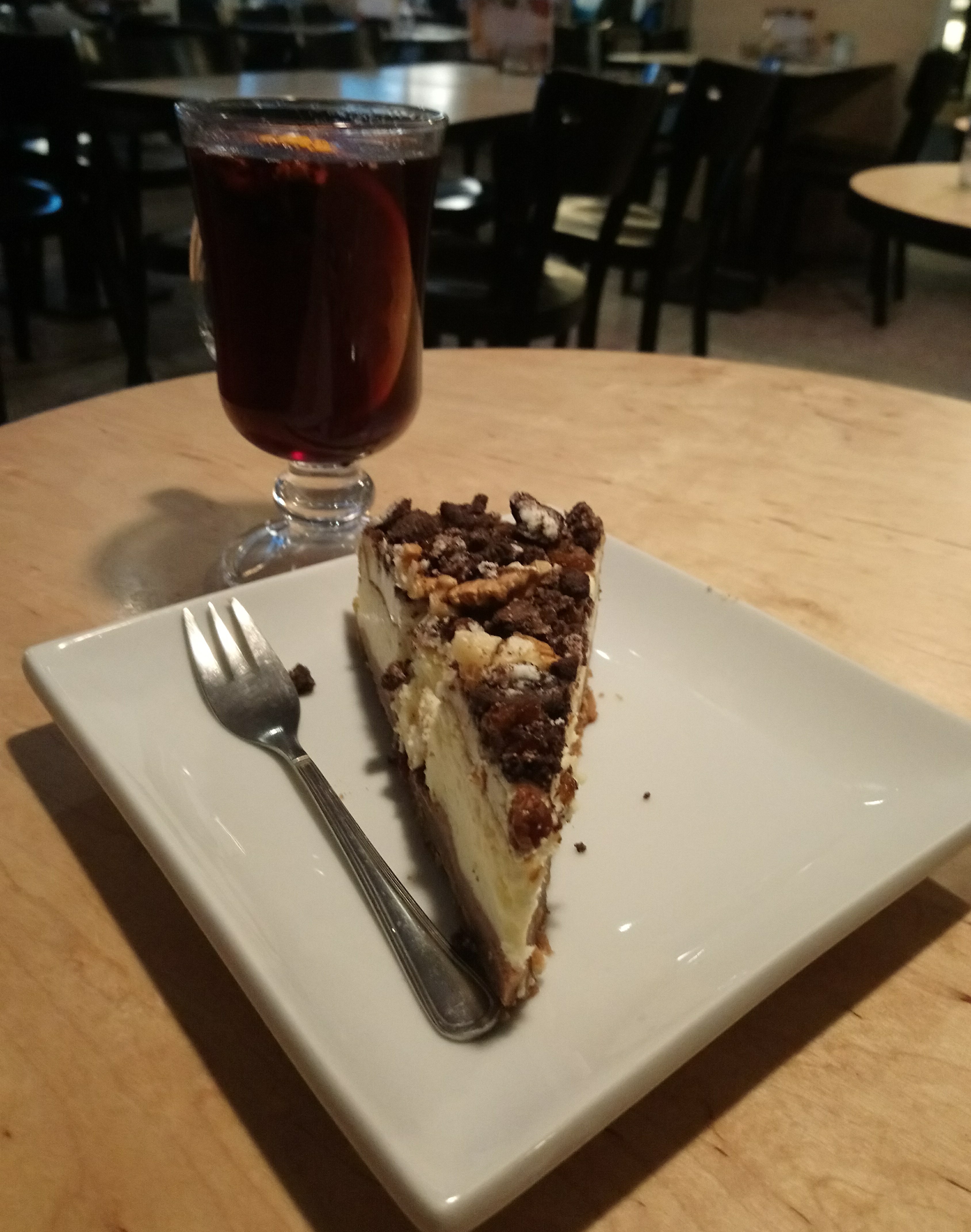 I potem zerkałam z zazdrością na ludzi, którzy mieli rozum herbatę z malinami wybrać. Mądr klient po szkodzie. Bywa. Ale byłam, obadałam... A że każdy coś jadł... no to jak to, tak przy pustym stoliku? Zgrzeszyłam i ja - sernikiem :)