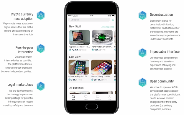 - Impeccable interface. Our interface design brings a harmonious and seamless experience of buying and selling goods globally. We will strive to open our API to the community in order to develop the best adaptation of the platforms for specific local needs of the global community.