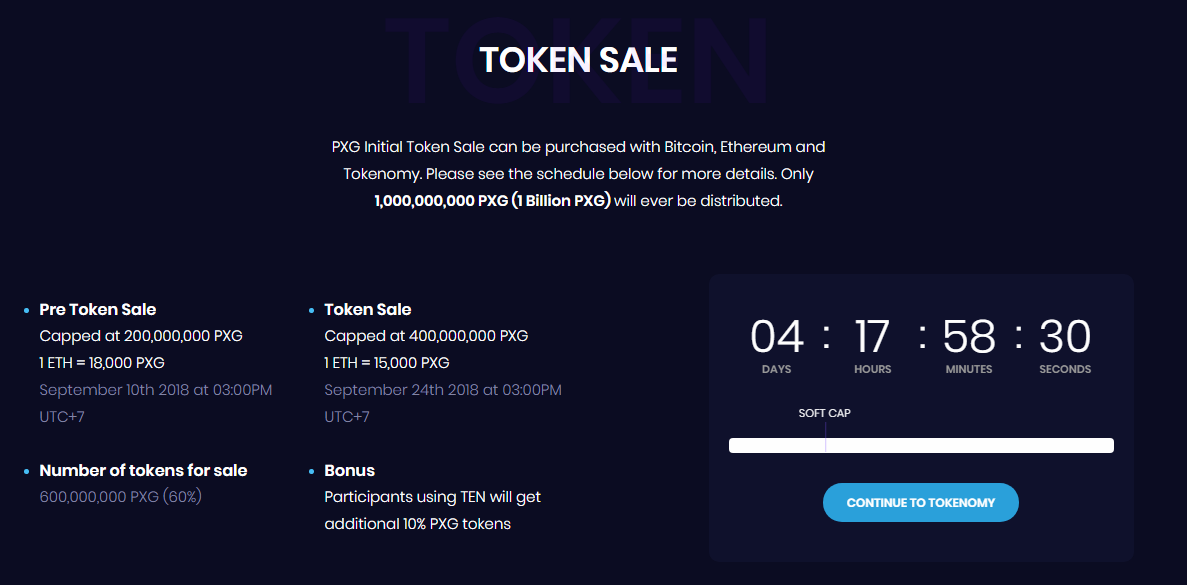 PXG has a total supply of 1 billion tokens (1,000,000,000 PXG) with details of the token metric as follows: