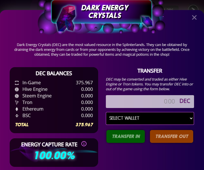 The fact that traditional free-to-play games gives out in-game currencies and items to anyone who signs up for free highlights the fact that the items are infinitely printavle and mostly worthless. Splinterlands is different. All of teh game cards and the in-game currency, Dark Energy Crystals (DEC ) are limited in quantity and able to be bought and sold on various platforms. This means that it´s not possible for them to be handed out to aryone who signs up an email addres, and in order to start earning them players need to put a little bit of skin in the game.