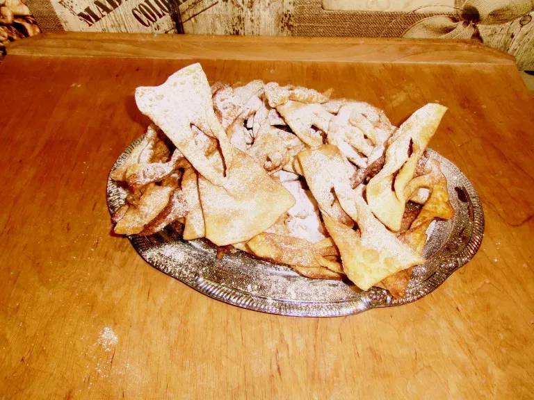 Gdy skończysz wyrabiać ciasto, rozwałkuj je bardzo cieniutko. Pokrój je w prostokąty, które mają na środku małą dziurkę. Jeden z boków chrusta przełóż przez dziurkę i wrzuć na głęboki nagrzany olej. smaż odwracają aż się zarumieni. Potem połóż na papierze, aby pozbyć się tłuszczu i posyp cukrem pudrem.
