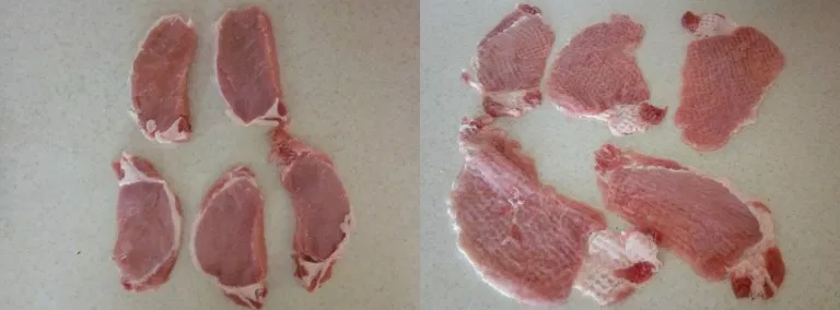 Mięso pokrój w plastry na grubość około 1,5 cm. Potem rozklep je z dwóch stron. Następnie szczyptą soli i pieprzu przypraw każdy kawałek z dwóch stron. Później rozbij jajko na talerzyku i wymieszaj je widelcem. Kawałki mięsa maczaj w jajku z dwóch stron, a następnie obtocz w bułce tartej z dwóch stron. Na patelni rozgrzej smalec. Potem smaż schabowe z dwóch stron do momentu zarumienienia się panierki.