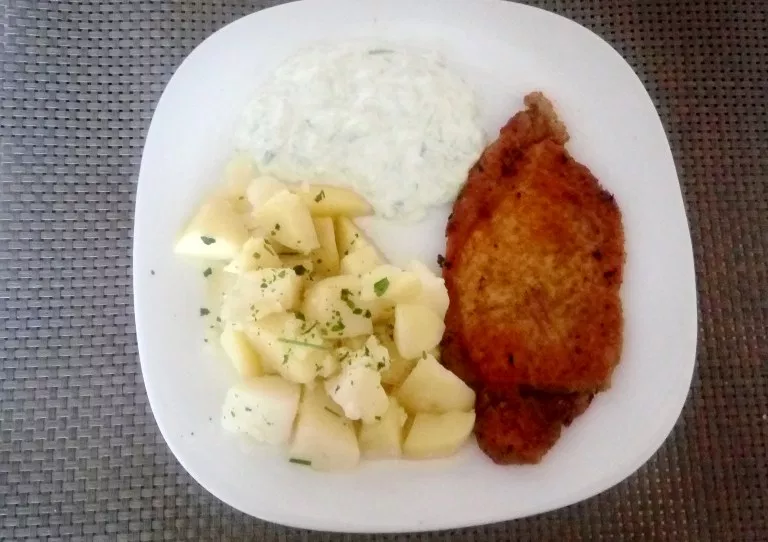 Schabowy z ziemniakami to pyszny polski obiad. Na samą myśl o nim, aż mi ślinka cieknie.