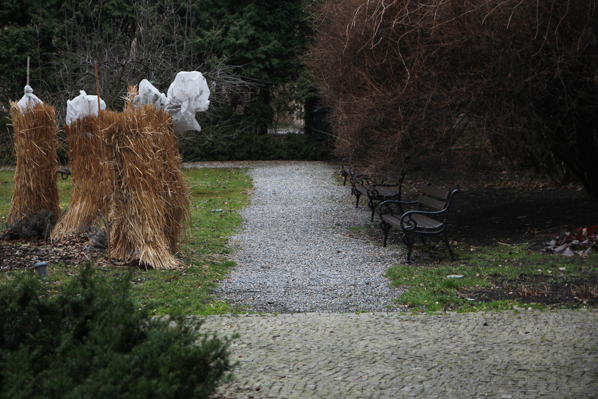 I choć muzea są zamknięte, to ogród pozostaje otwarty. Wciąż jednak widać zimowe zabezpieczenia. Ludzi zazwyczaj brak, co sprawia, że jest to idealne miejsce, by w ciepłe dni usiąść i poczytać książkę...