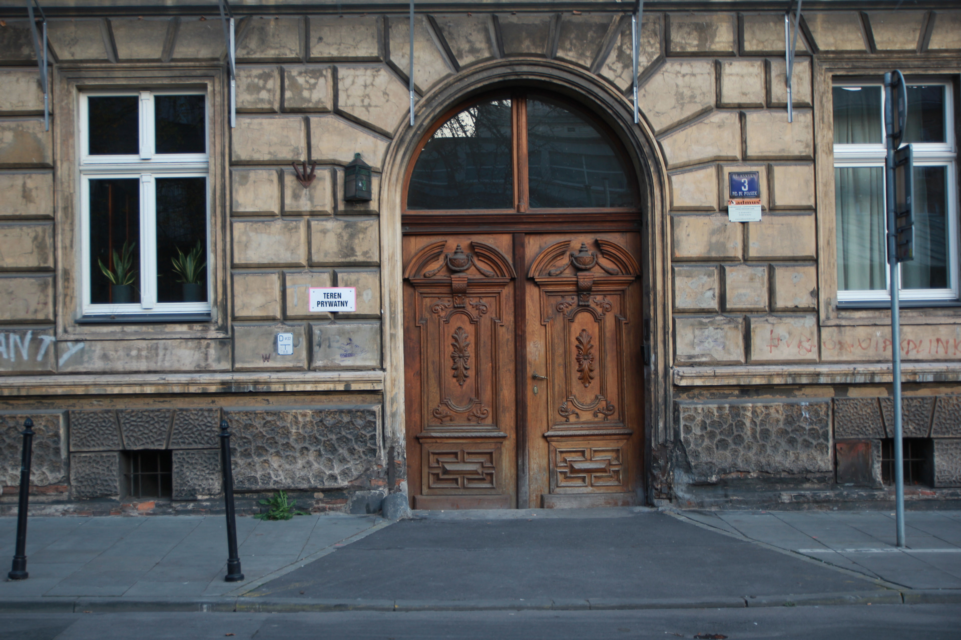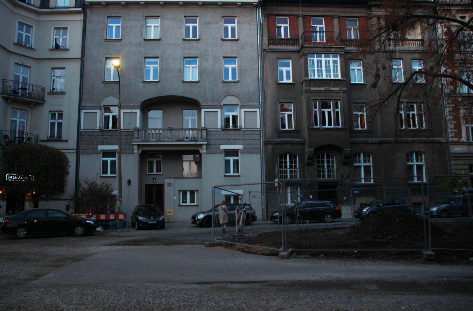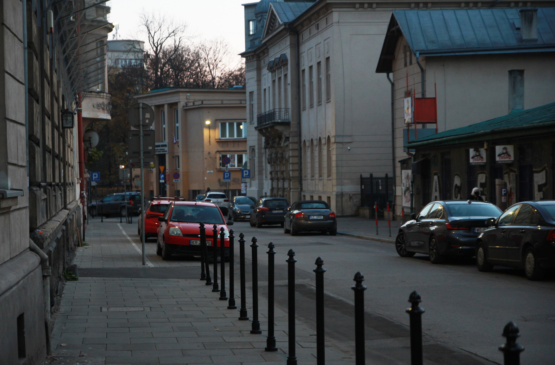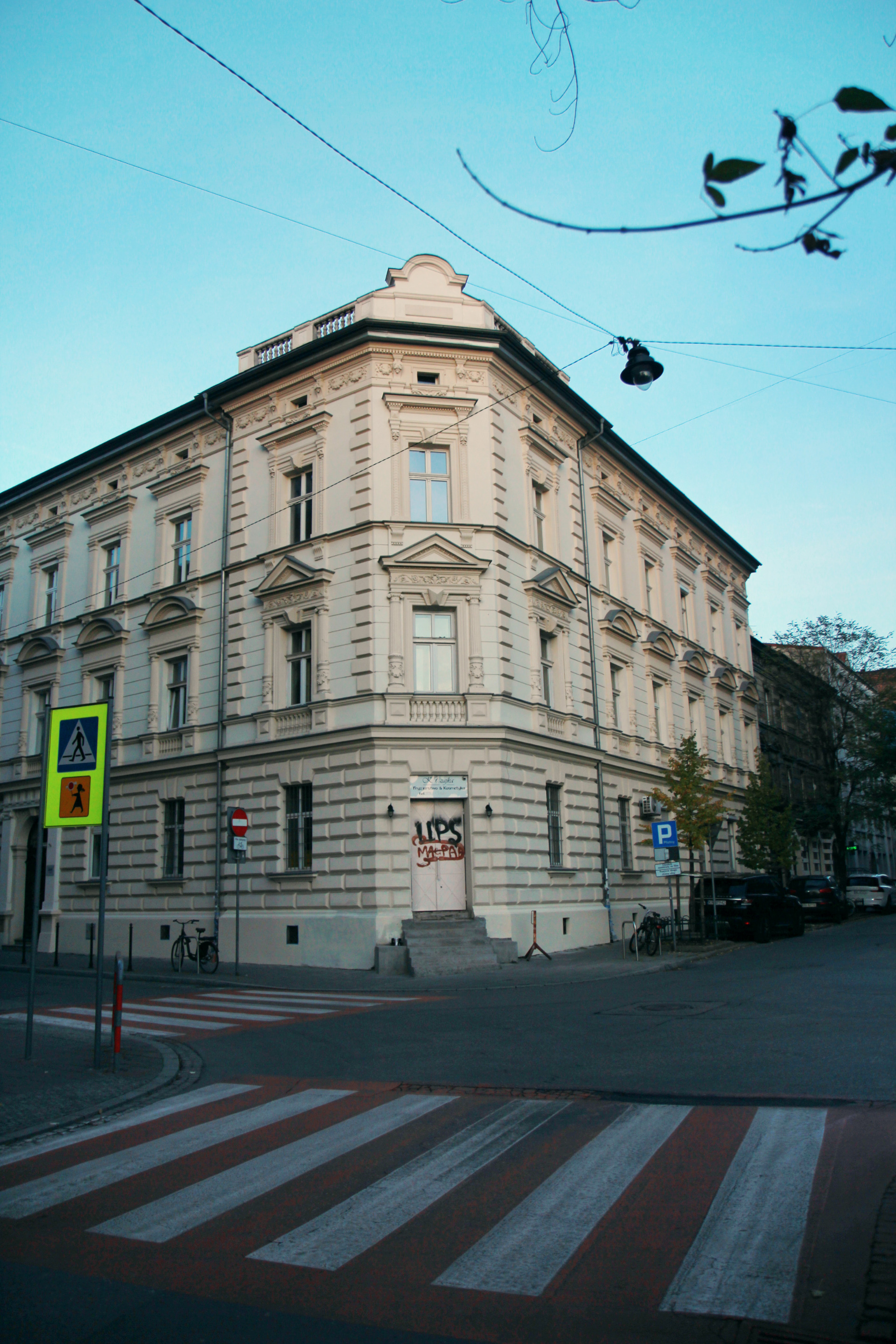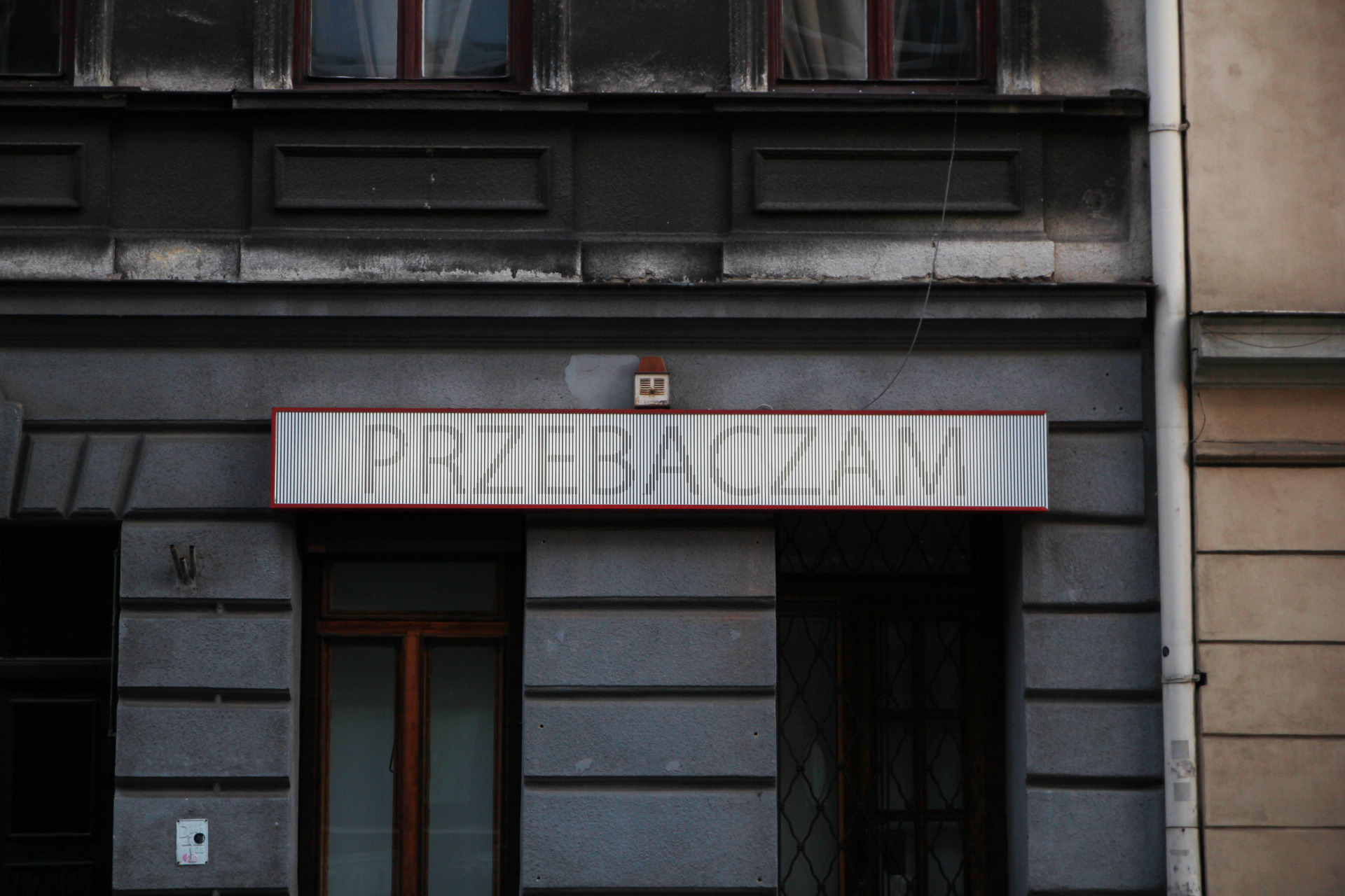 Początek drugiego podejścia był nieco inny. Zamiast Batorego poszliśmy Asnyka w kierunku Plant. Po drodze minęliśmy dziwny lokal bez żadnej tabliczki, za to z podświetlonym napisem PRZEBACZAM (na Google Street View widać, że były tam kiedyś KREDYTY, może jedno łączy się z drugim). Dalej z kolei jest Instytut Pamięci Narodowej.