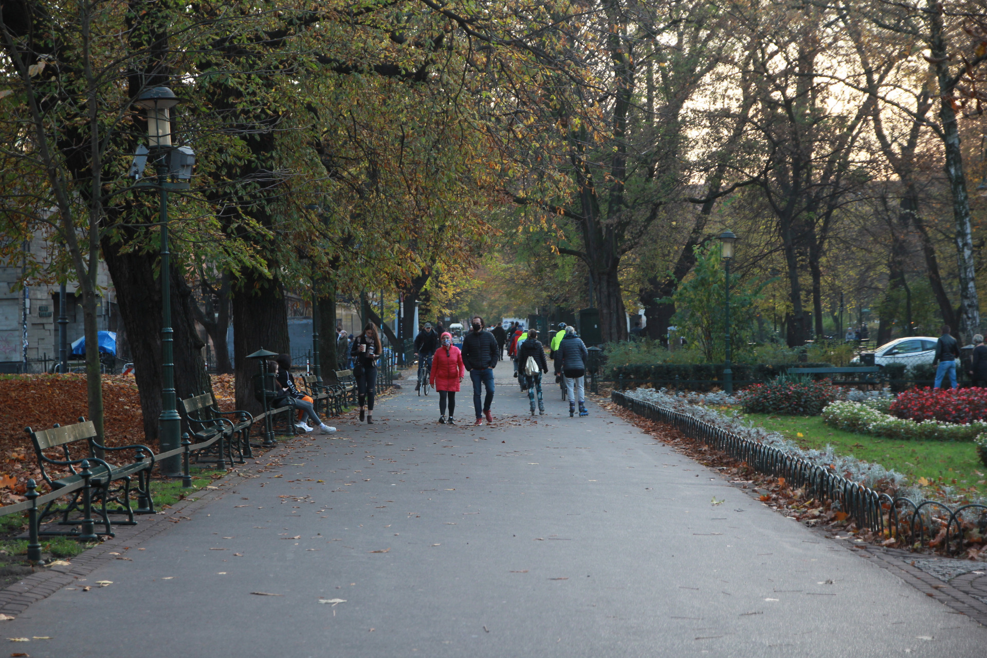 Na Plantach ludzi całkiem sporo. Teoretycznie jest to park o powierzchni 21 ha, nie ma więc obowiązku noszenia maseczki. Niemal wszyscy jednak noszą, bo na internetowych grupach poszła fama, że Policja daje mandaty...