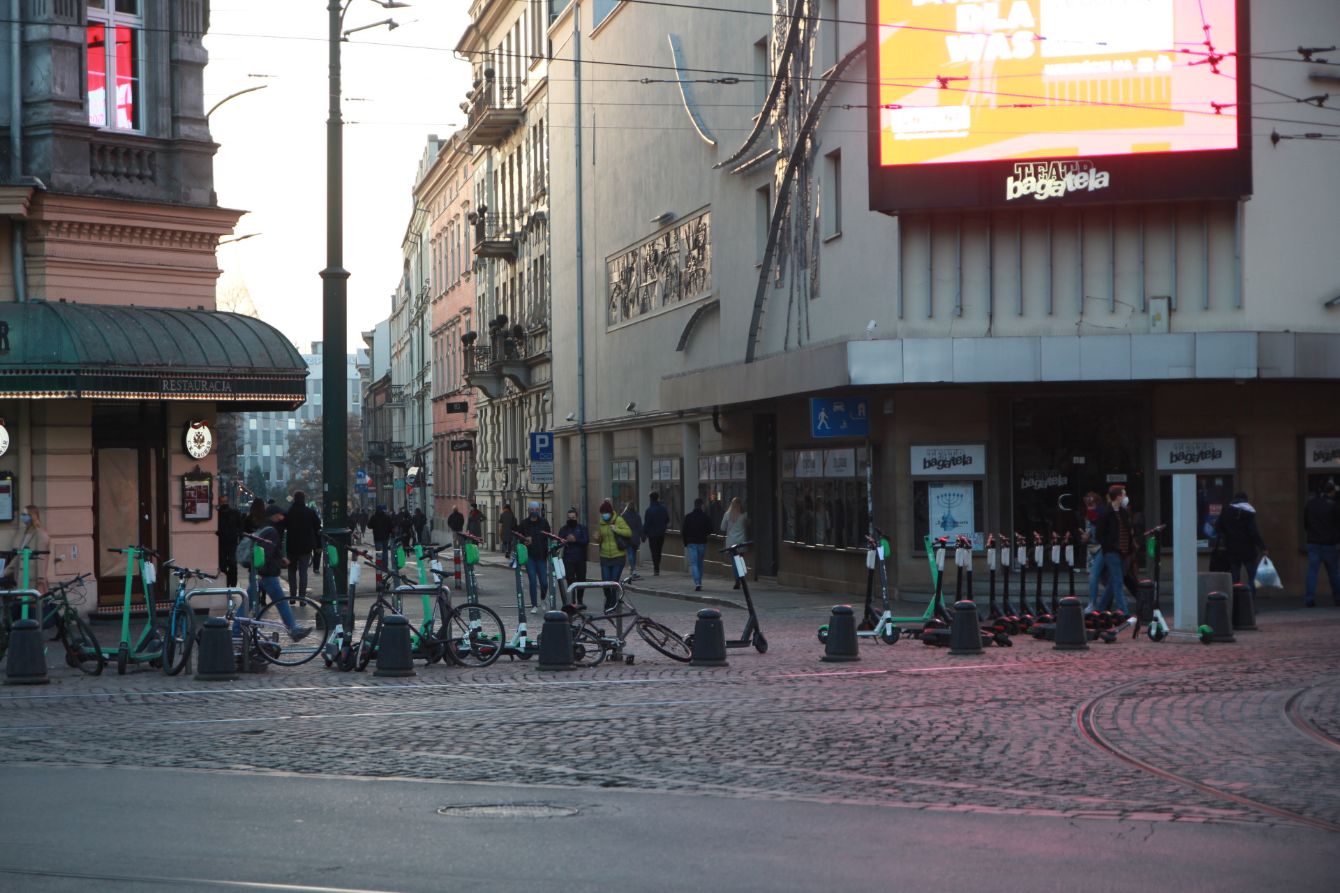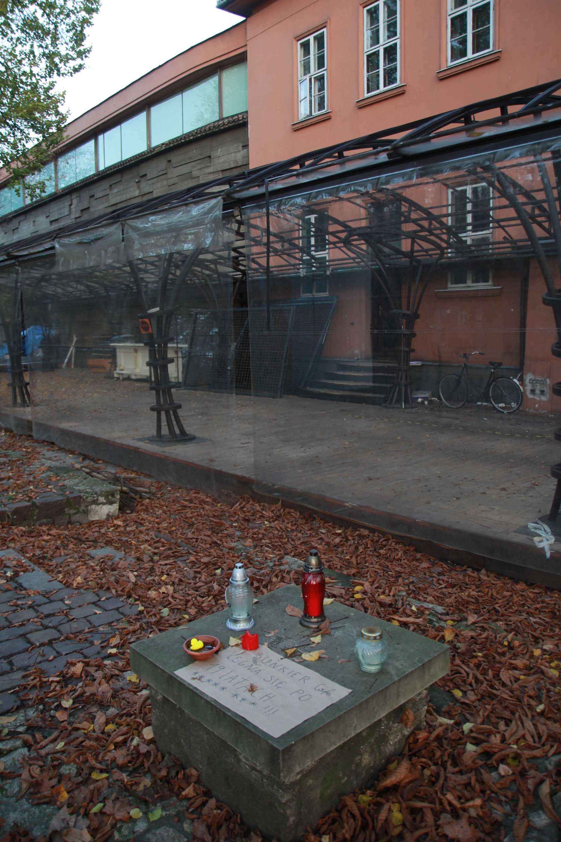 Idziemy w kierunku Teatru Bagatela. Mijamy Bunkier Sztuki i do niedawna tętniące życiem Bunkier Cafe, które obecnie jest w stanie likwidacji. Swoją drogą ciekawe, że upadła tak popularna miejscówka (w przeciwieństwie do wielu lokali w centrum, tu zawsze było sporo ludzi). Ale taka już specyfika Krakowa. Wiosną czytałem artykuł, z którego wynikało, że koszty prowadzenia biznesu w centrum miasta są ogromne. W przypadku barów/restauracji dopiero 4 tydzień to zarobek "na czysto". Przez trzy tygodnie zwykle zarabia się na pokrycie kosztów. Jeszcze niedawno na Szewskiej za lokal ponad trzydziestometrowy można było usłyszeć 17K zł za miesiąc... Taka sytuacja.