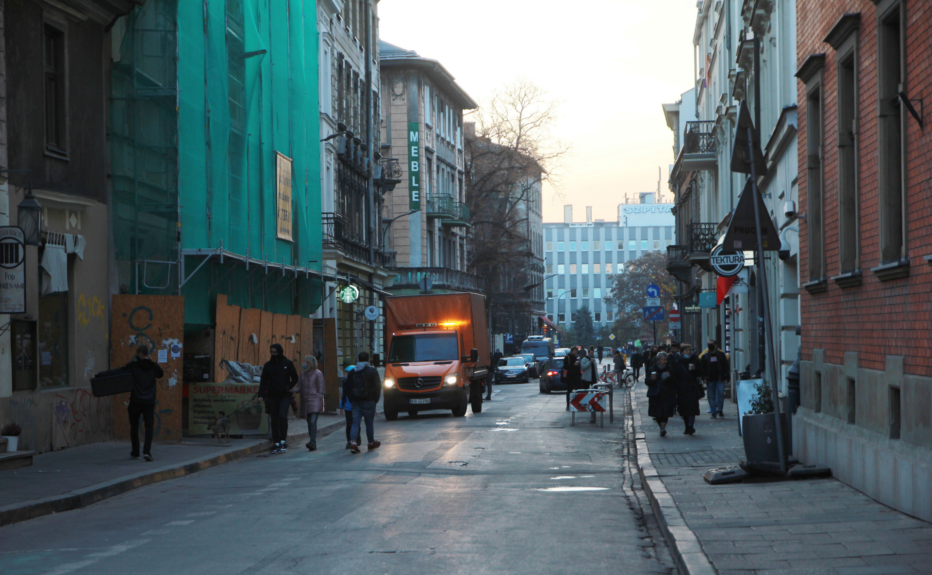 Idąc Krupniczą doszliśmy do Dolnych Młynów - ulicy, która dawniej była centrum imprezowym Krakowa, ale końcem września kompleks byłej fabryki papierosów wrócił do właściciela i wszystkie lokale musiały się ewakuować. Spojrzeliśmy na to miejsce, a potem zrobiliśmy kilka kroków i skręciliśmy w Garncarską.