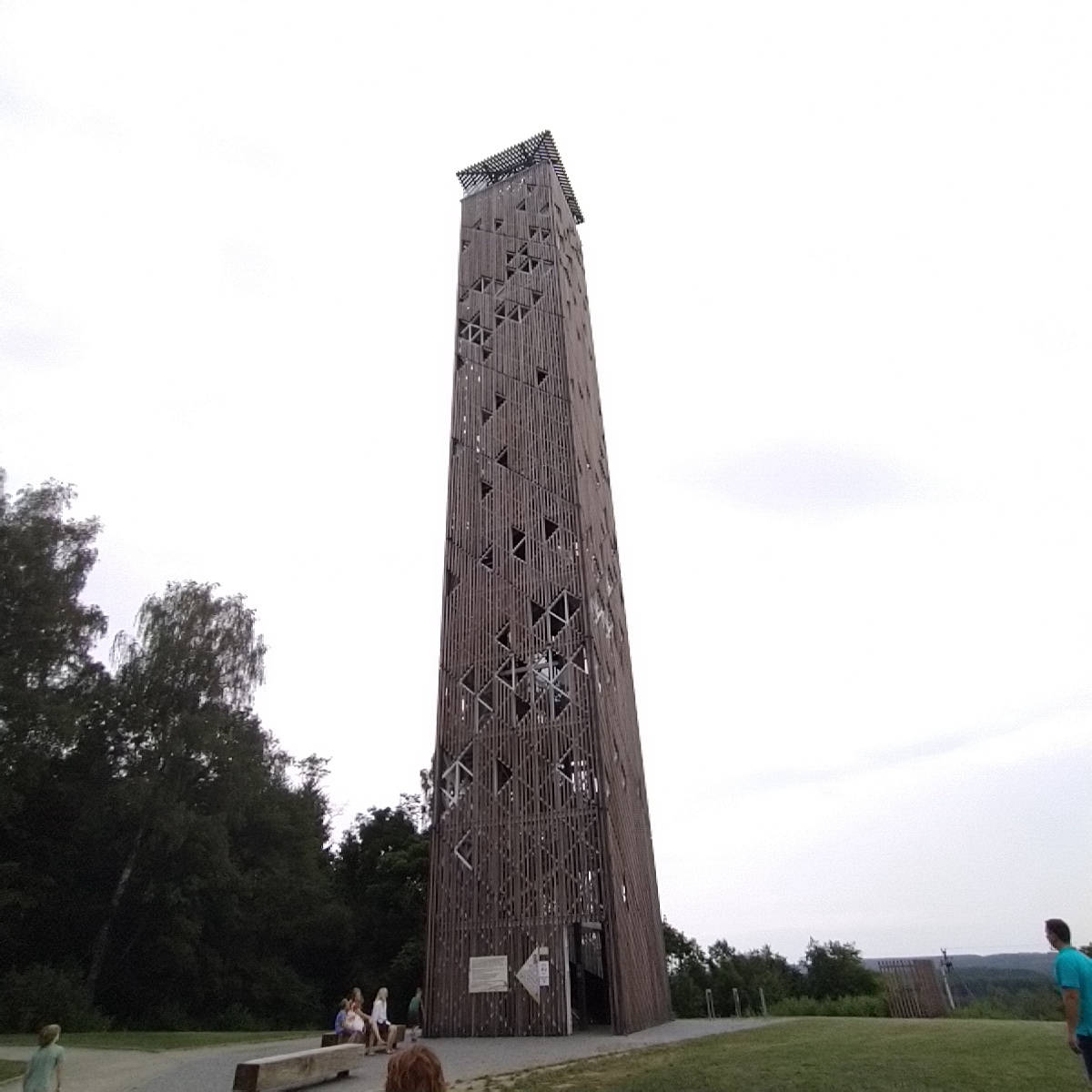 Najlepiej zacząć od rozejrzenia się po okolicy. Pod Birsztanami znajduje się wieża widokowa, na którą warto się wspiąć, aby przyjrzeć się z góry „buchcie” i Niemnowi. To prawdziwy rarytas dla miłośników wież widokowych. Ma 51 metrów wysokości, ale schody (jest ich trzysta) są tak doskonale zaprojektowane, że wchodząc nie czuje się zmęczenia. Wieżę oddano do użytku w 2019 a więc to całkiem nowa atrakcja. Miałem wrażenie, że architekt inspirował się obrazami Ciurlionisa, który często przedstawiał na nich wysokie dzwonnice. Autorem projektu jest Donatas Malinskas.