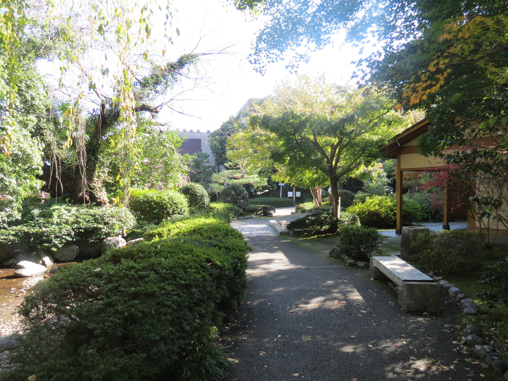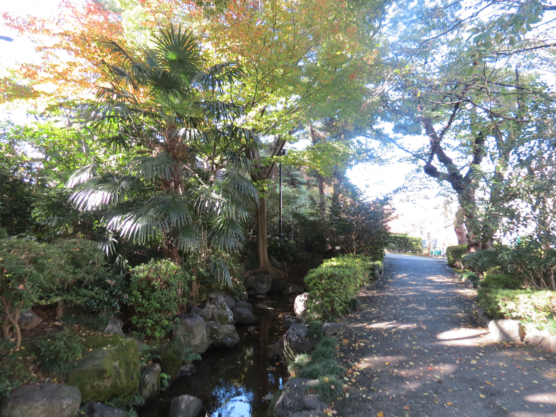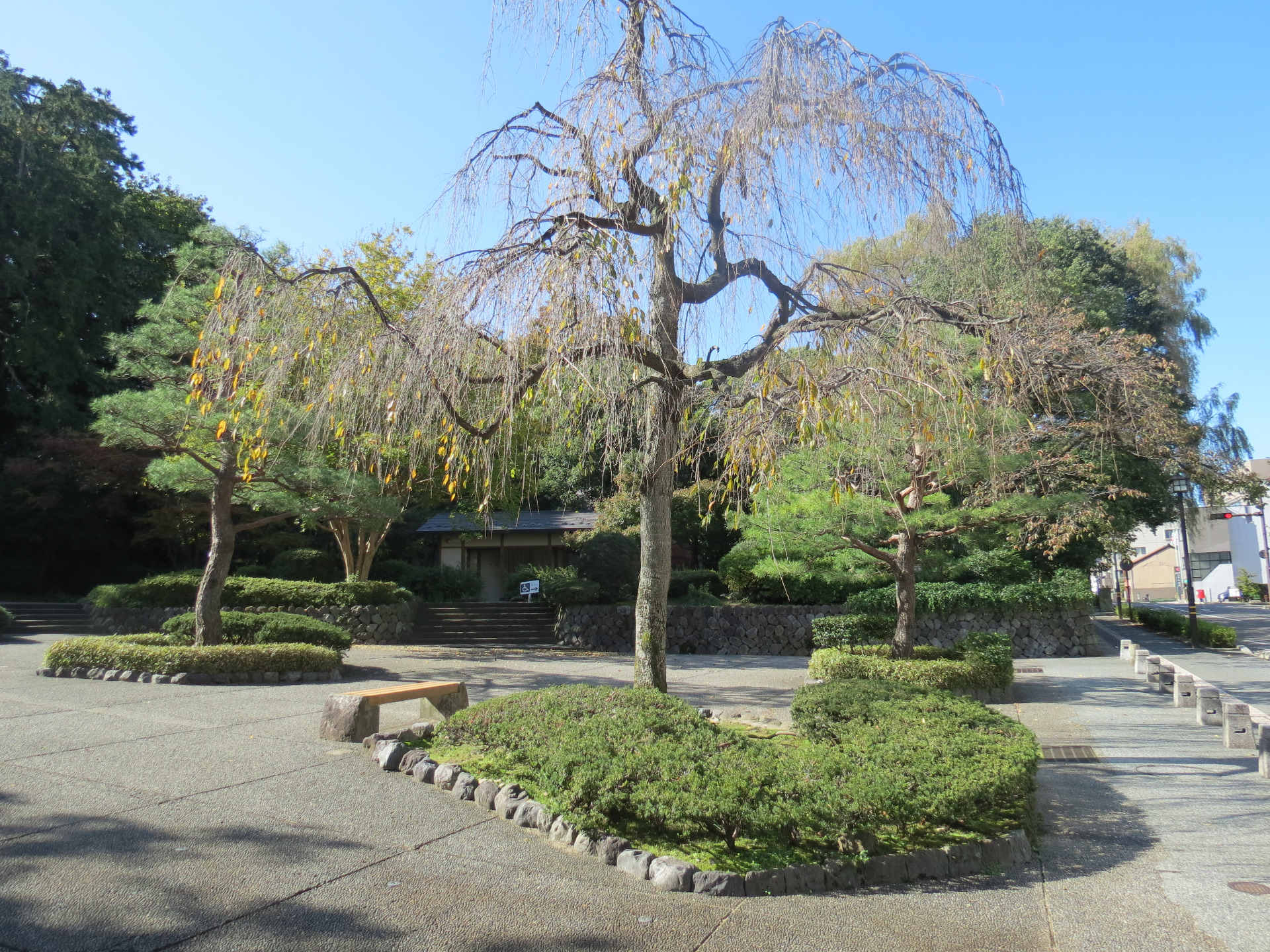 W tym poście napiszę o niewielkim parku, przez który przechodziłam w drodze do zamku w Kanazawie. Niewielki, ale i tak piękny, zadbany, który urzekł mnie swoim wyglądem. Tuż przed wejściem do niego spodobały mi się drzewa, których pnie były otoczone krótko przystrzyżoną trawą i równo ułożonymi kamieniami. Dookoła było bardzo czysto. Fajnie wygląda to drzewo z powyginanymi gałęziami i żółtymi liśćmi.