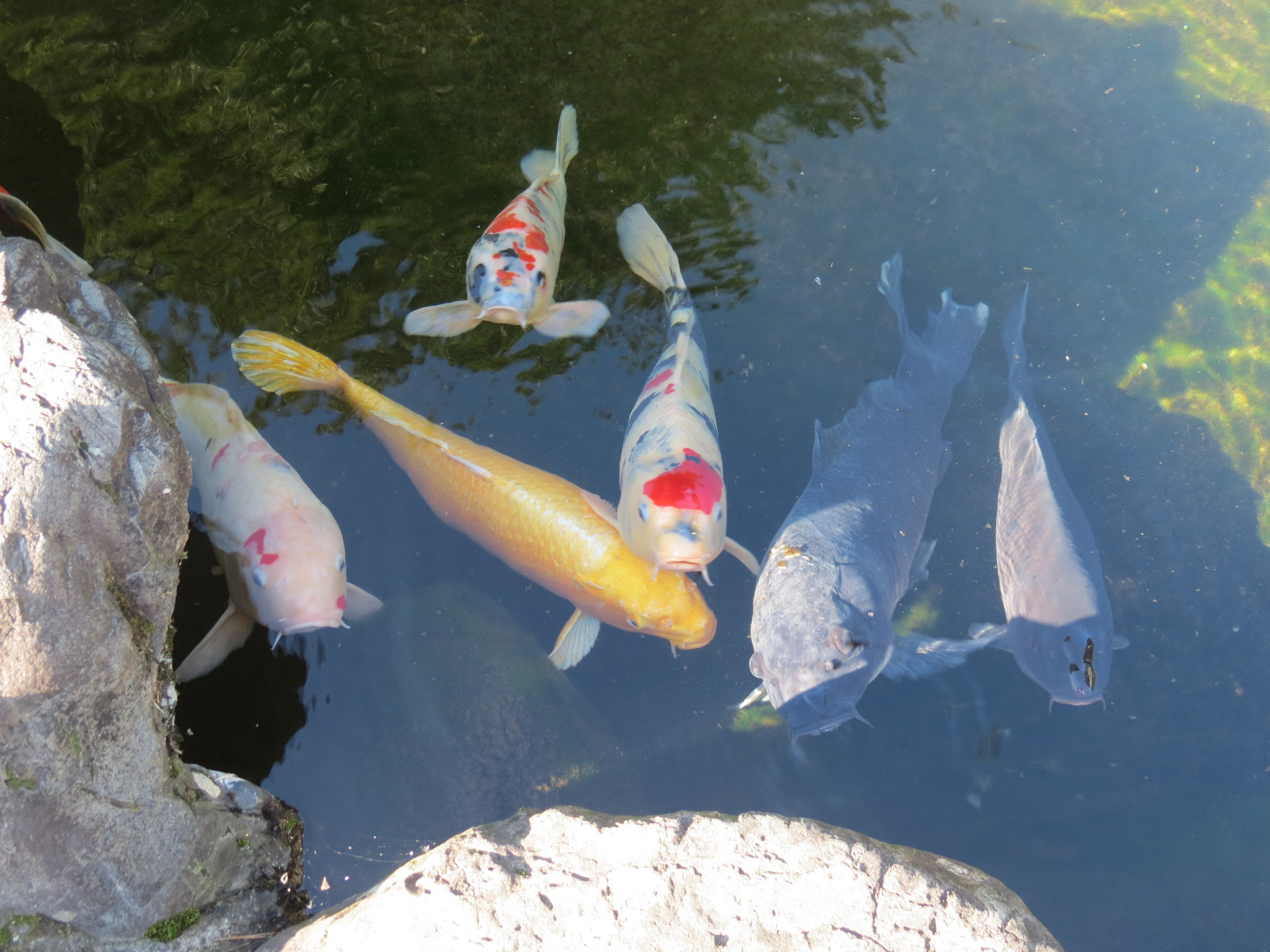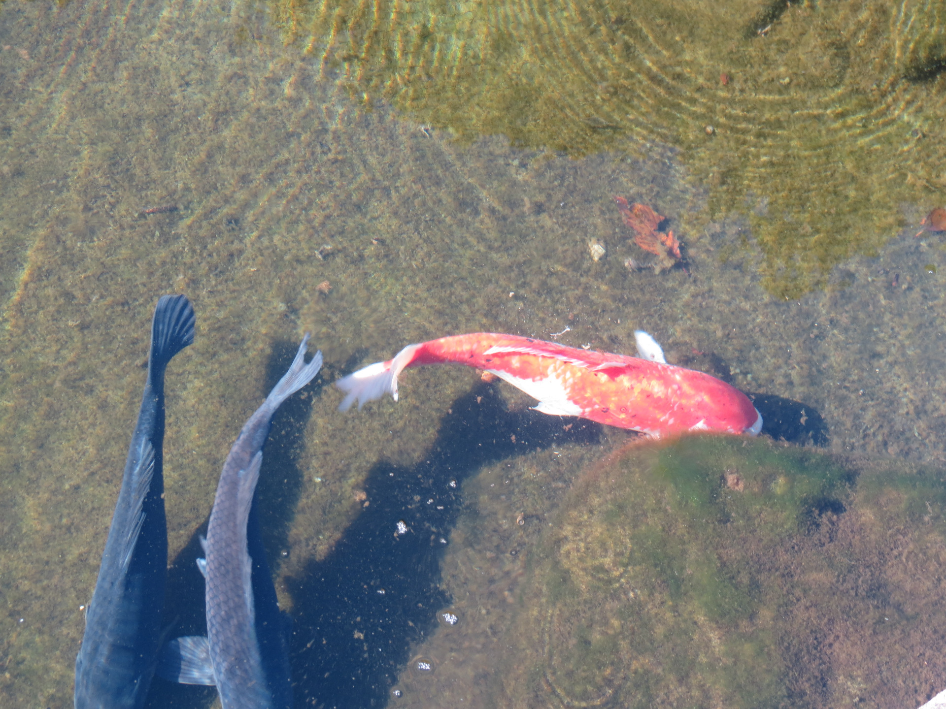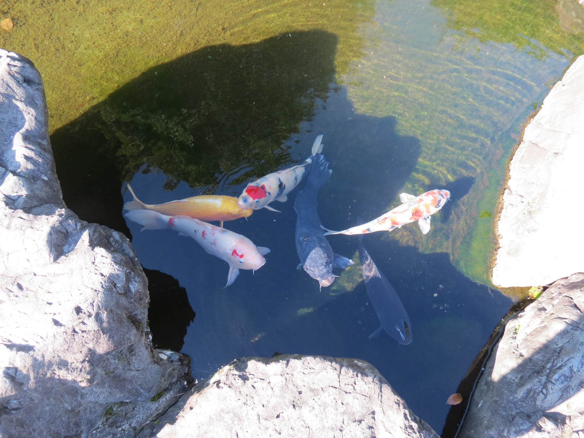 Niedaleko parku zauważyłam staw, w którym pływały kolorowe karpie Koi. Miały różne barwy- pomarańczowo-białą, czerwono-granatowo-białą, czarną, a nawet żółtą, przypominającą złotą.