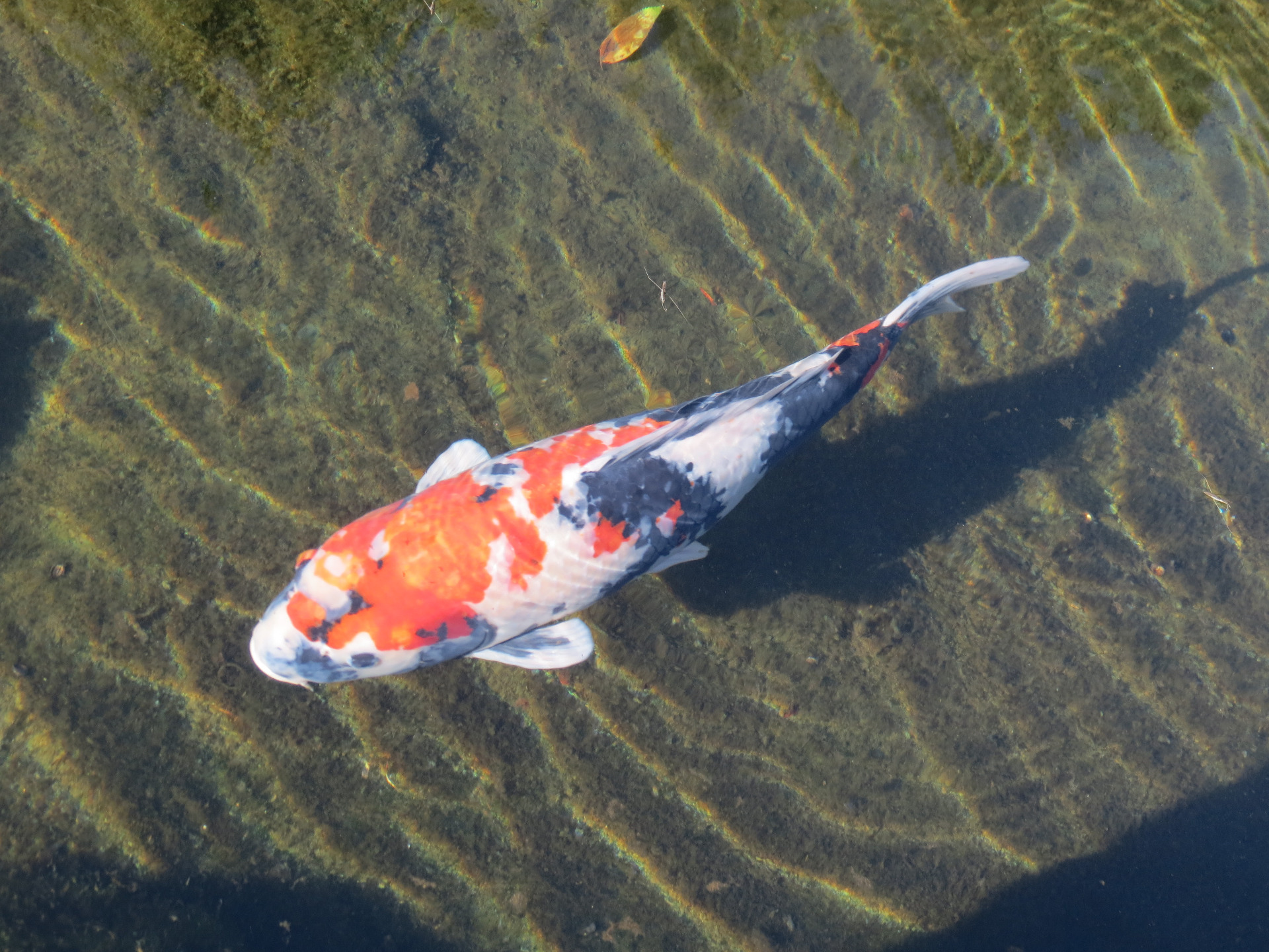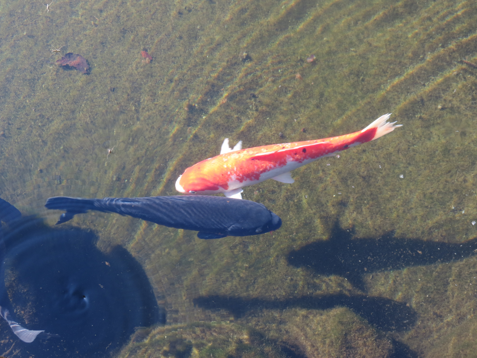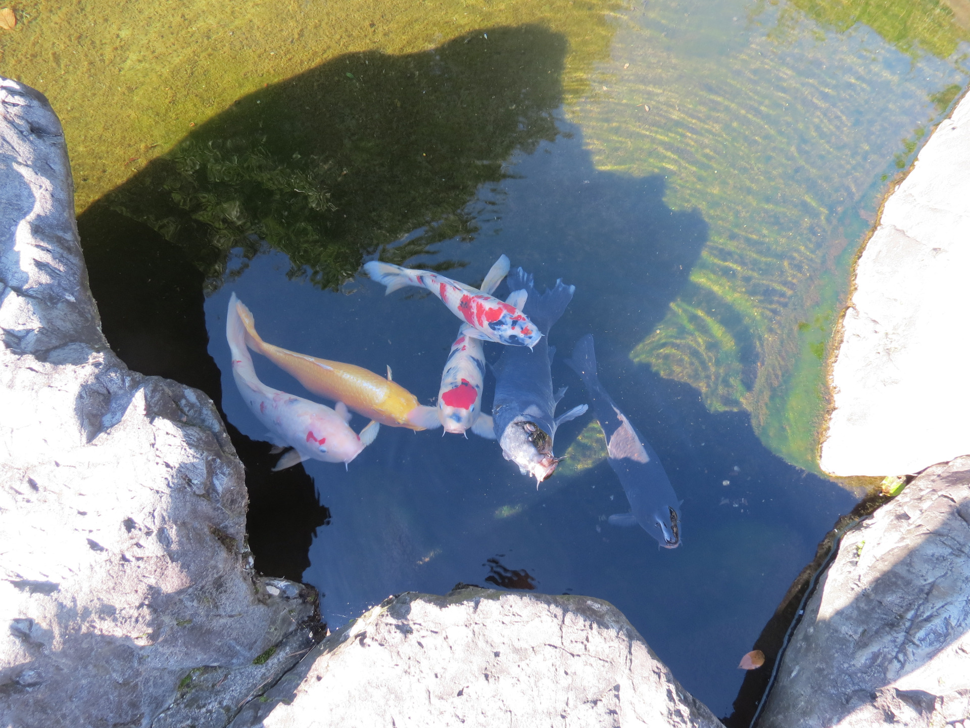 Niedaleko parku zauważyłam staw, w którym pływały kolorowe karpie Koi. Miały różne barwy- pomarańczowo-białą, czerwono-granatowo-białą, czarną, a nawet żółtą, przypominającą złotą.