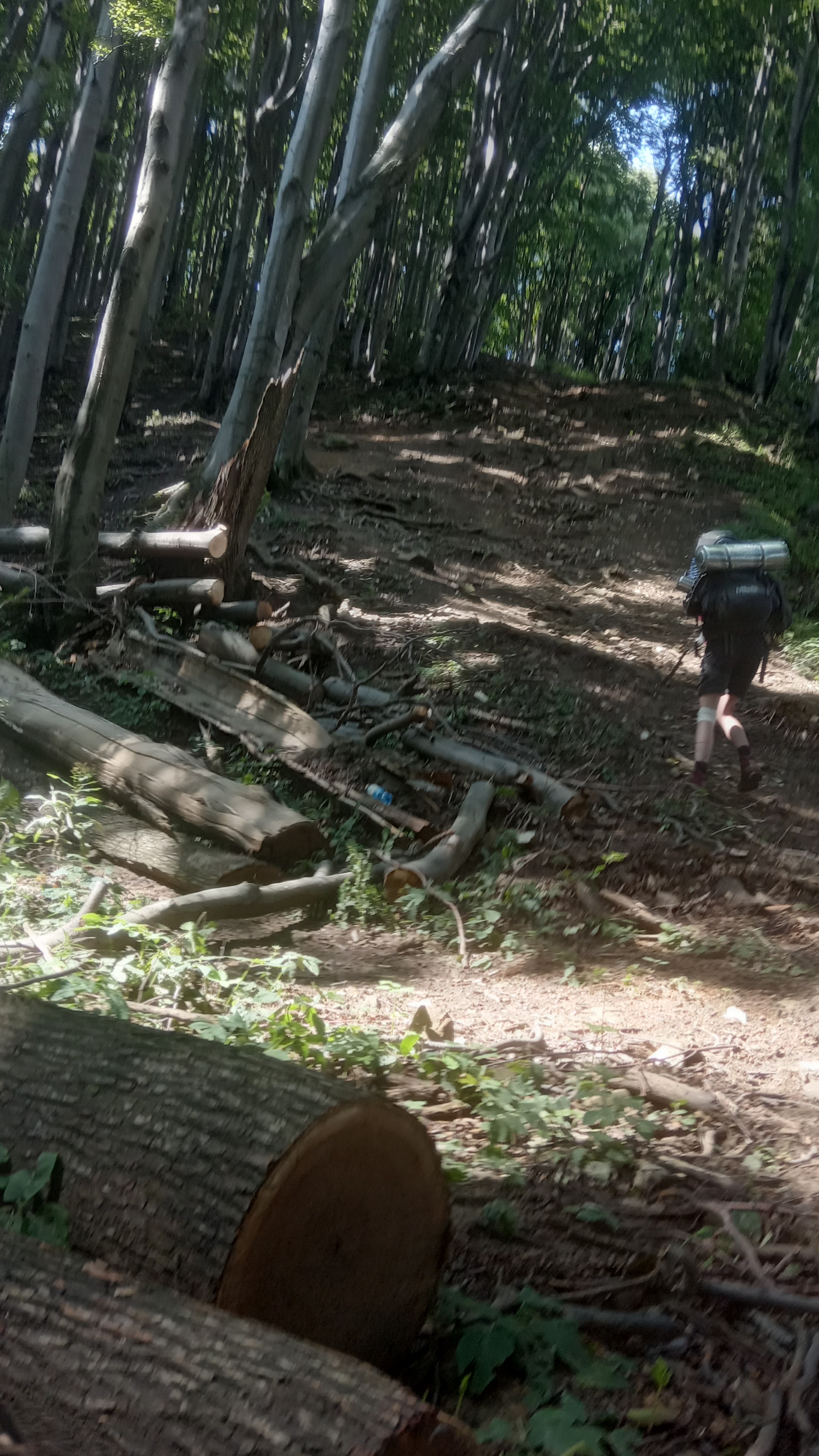No dobra, przed podejściem zróbmy chwilę odpoczynku. Ktoś jak by właśnie w tym miejscu postawił tu to wielkie, zwalone drzewo, więc czemu by nie skorzystać. Siadamy na pniu i zbieramy siły.