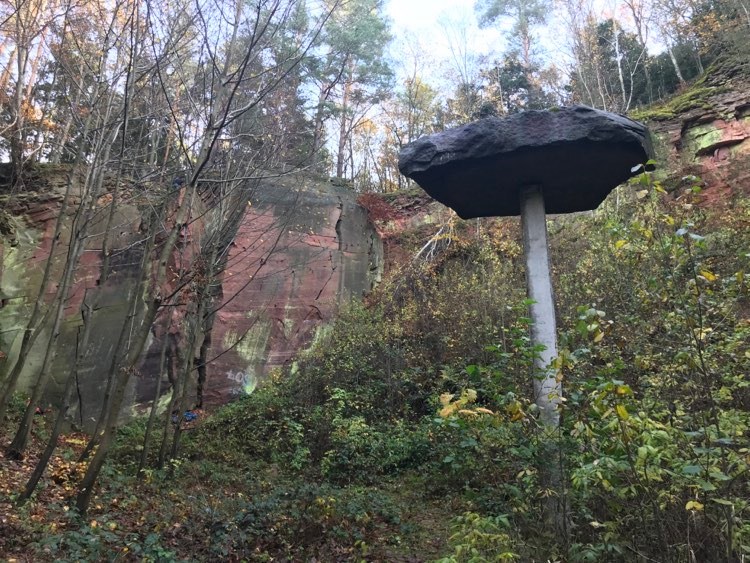 Na początek odwiedziliśmy Wykień. Niewielki rejon, gdzie pośrodku kamieniołomu na czymś w rodzaju cokołu stoi duży głaz. Praktycznie za każdym razem jak przechodzi się z jednej strony na drugą trzeba przejść pod, lub w pobliżu tego głazu. Nie wiem kto i po co postawił tam ten głaz (bo raczej nie wygląda na formację naturalną), ale podziwiam kunszt i to, że ktoś był w stanie obliczyć jak go ułożyć aby dobrze go wyważyć i aby stał tam stabilnie
