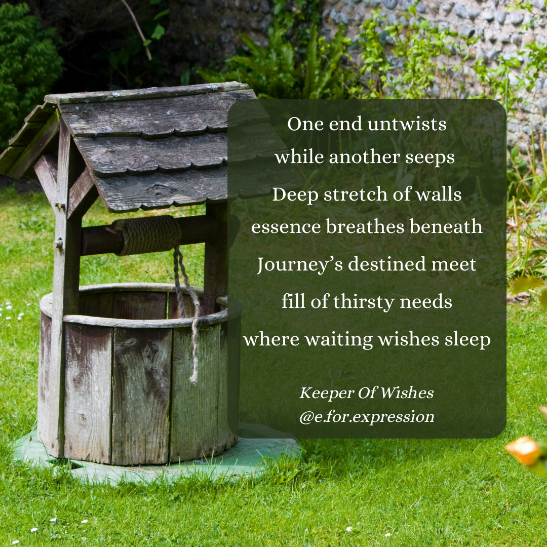 Keeper Of Wishesawesome1oo (33)in #poem • 4 years ago One end untwists while another seeps Deep stretch of walls Essence breathes beneath Journey's destined meet Fill of thirsty needs where waiting wishes sleep Keeper Of Wishes #poetry #well #wish #journey #sleep #wall #need