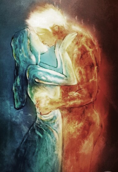 Estoy a punto de enunciar una palabra mientras acercas tu humanidad hacia mí, me abrazas sutil pero apasionadamente, siento el calor de tu cuerpo, siento llegar a casa, en tus tibios brazos, donde sin vacilar acobijo mi cara en tu pecho, siento tu loco corazón latir como un animalito salvaje, apretó mis labios para seguir callada, así disfrutar del momento, levanto la mirada, tus ojos siguen los míos, como siempre ellos hablan lo que el lenguaje no puede expresar, son capaces de decir los más maravillosos te amo que pueden existir , me pierdo en ellos nuevamente mientras te estampo un sutil beso en tus pequeños labios temblorosos, al encontrar los míos quedo extasiada en ellos , siento como en mi cuerpo sucede algo genial, mi sangre se acelera, es algo mágico, puedo sentir como si fuese un campo cuando florece, como cuando cae el agua que los alimenta , mi piel siente reverdecer en amor tan profundo, siento tu respiración , pero de repente una briza fría toca e invade mi cuerpo y una lagrima va rodando por mi mejilla abro mis ojos, no estas, solo es la fría soledad de la noche, en frente de mi sigue la luna llena mirándome despiadadamente.