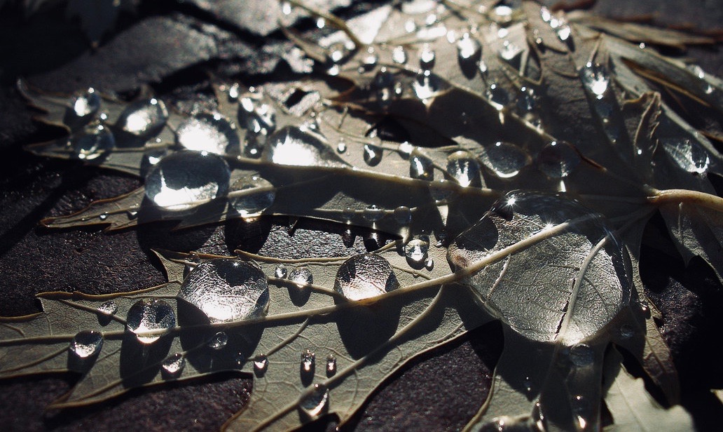 .1 — "Leaf and water drops" by SurfTiki [edited, cropped]