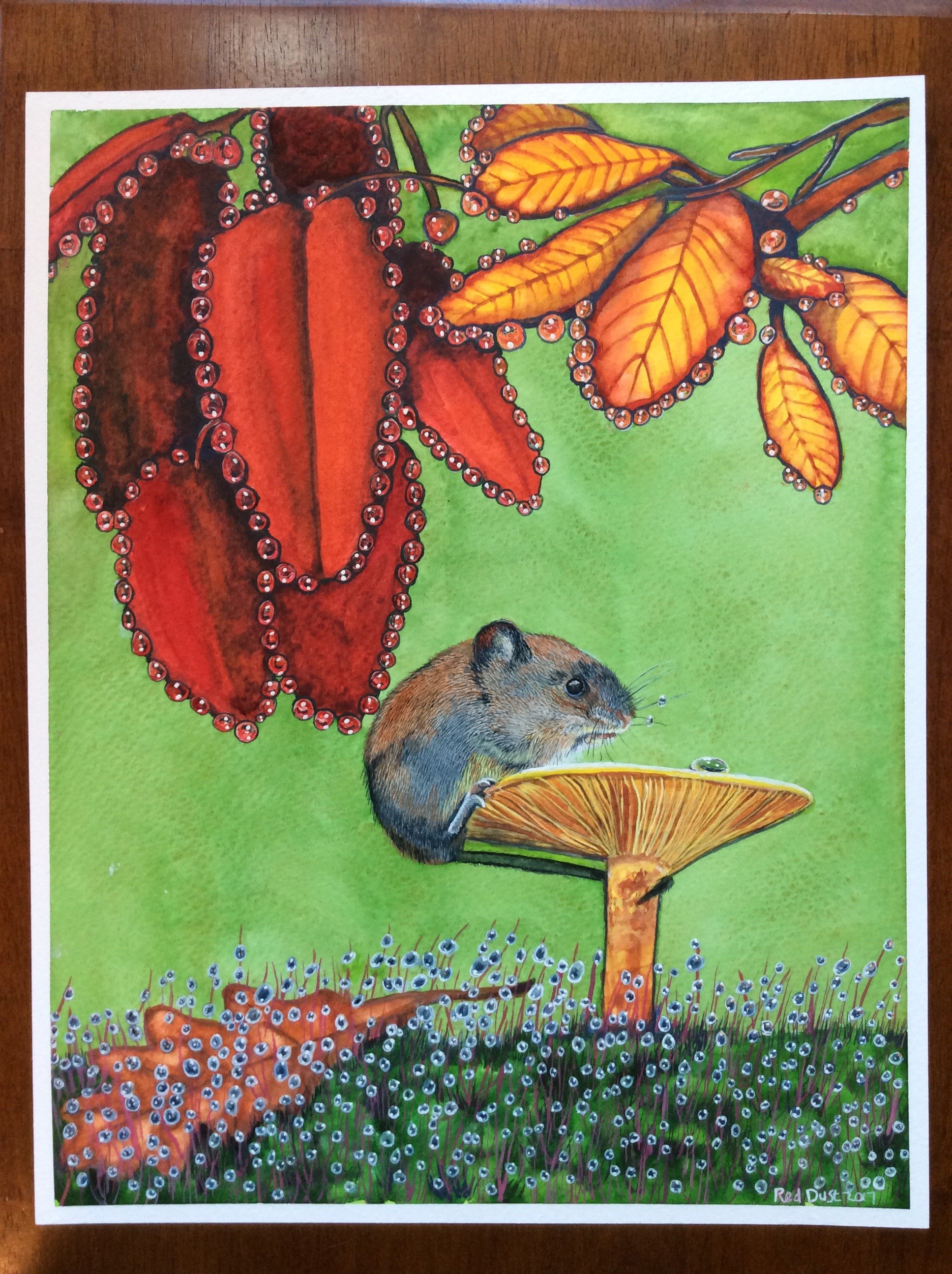 In the old post you share a close up of the mouse and the mushroom. The amount of detailing on the animal and the fungi are pretty amazing, particularly the mouse. Can't even imagine the number of strokes it would have taken for you to create it........ amazing work @reddust!