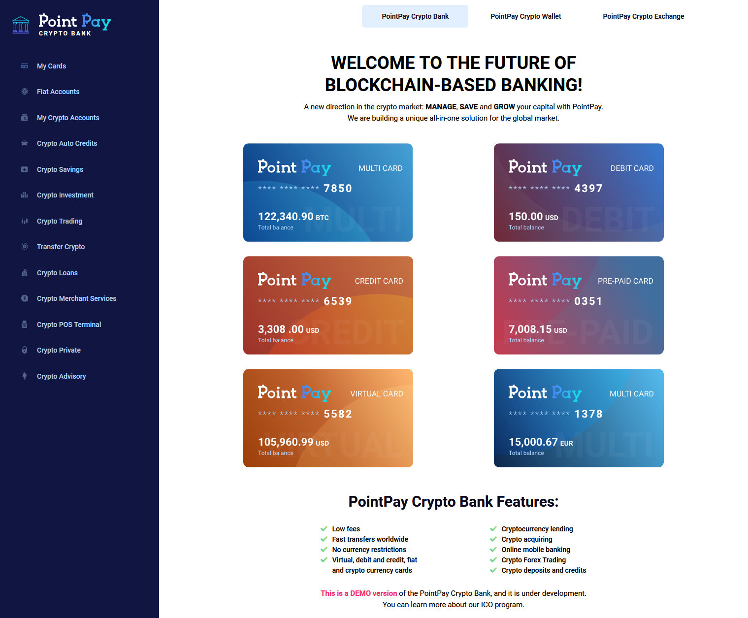 In essence, PointPay is an all-in-one solution for banking. To explain the concept of the all-in-one here, the main objective is to integrate crypto assets seamlessly into a perfectly functioning banking platform. So I can say that PointPay is a project that aims to put an ultimate solution to the crypto banking field.