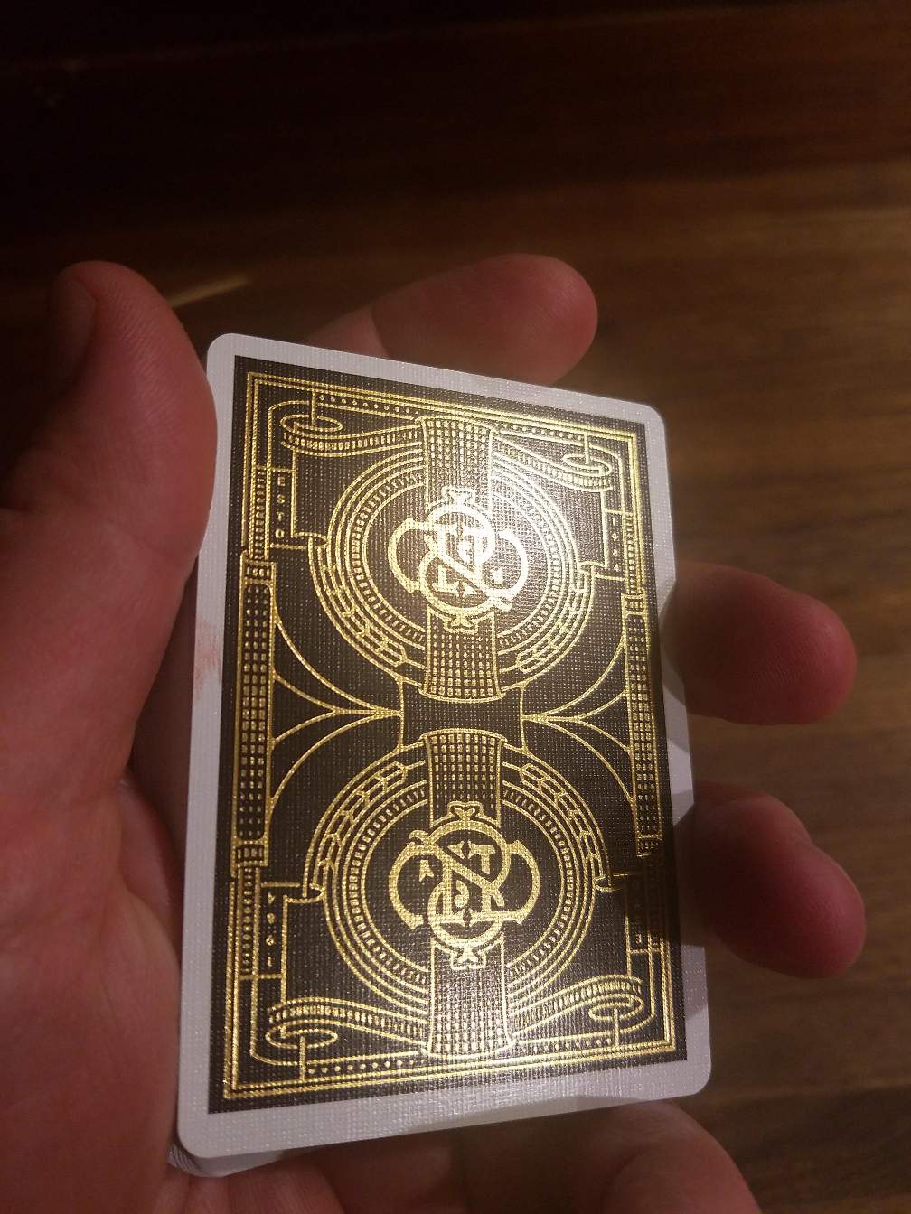 The back design is not too busy, two way and is great for card games as it's not too distracting. The gold foil inlay is super sexy.