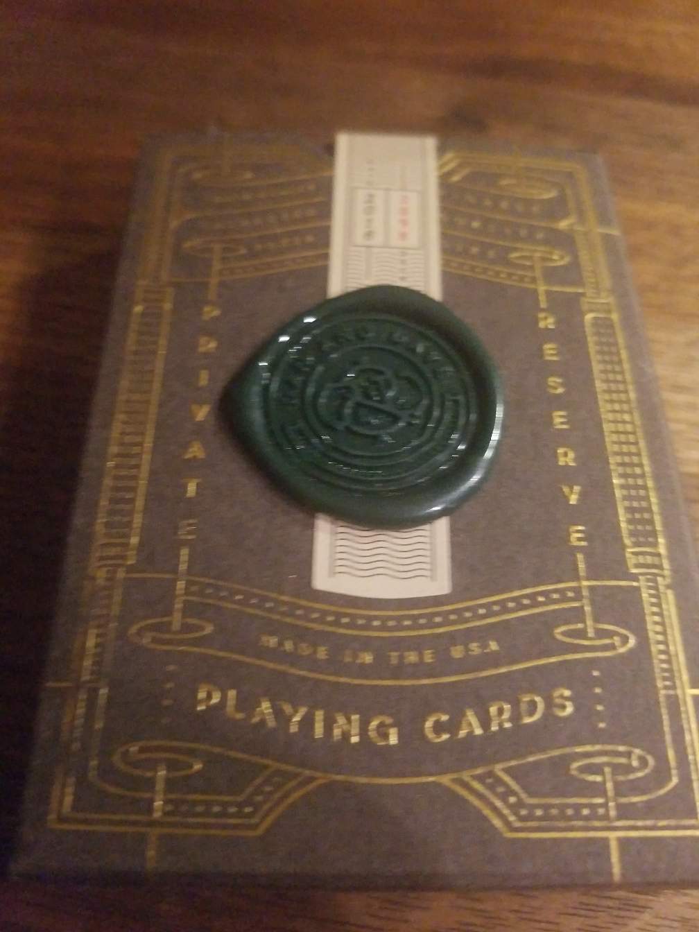 The tuck and seal really make this deck great. Soft matte stock, very unique numbered seal and the equally unique wax stamp seal.