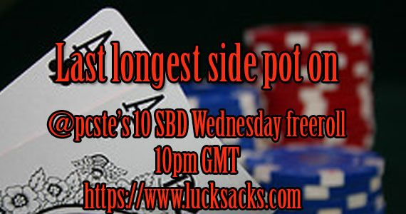 If you are playing in tonight's freeroll how about a last longest pot? To be in it send 1 SBD to @pcste with the memo "last longest" (include your lucksacks name if its different to your steemit name) and upvote this post and my wednesday freeroll post here
