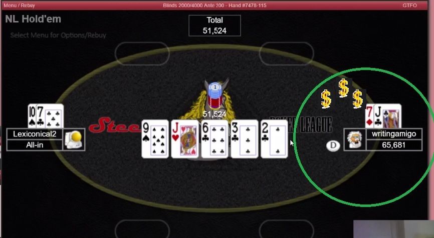 Yeah, next one is back to 10 min blinds. The game in the Pro League just days before made me reduce the blind time in the Lucksacks league and that was a mistake.