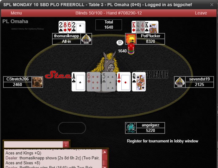 Monday Night 10 SBD (~$75 USD) PLO Freeroll - Steem Poker League Results
