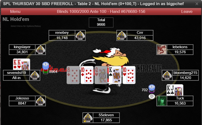 Thursday 30 SBD (~$255 USD) NLHE Freeroll - Steem Poker League Results