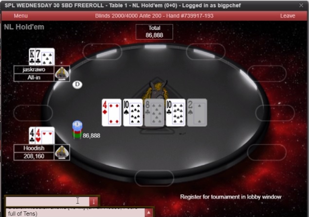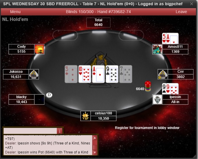 Thank you to everyone who came out to play in Wed Hump Day 30 SBD freeroll. We had 57 players take to the tables and a tournament run time of 3 hours 42 mins.