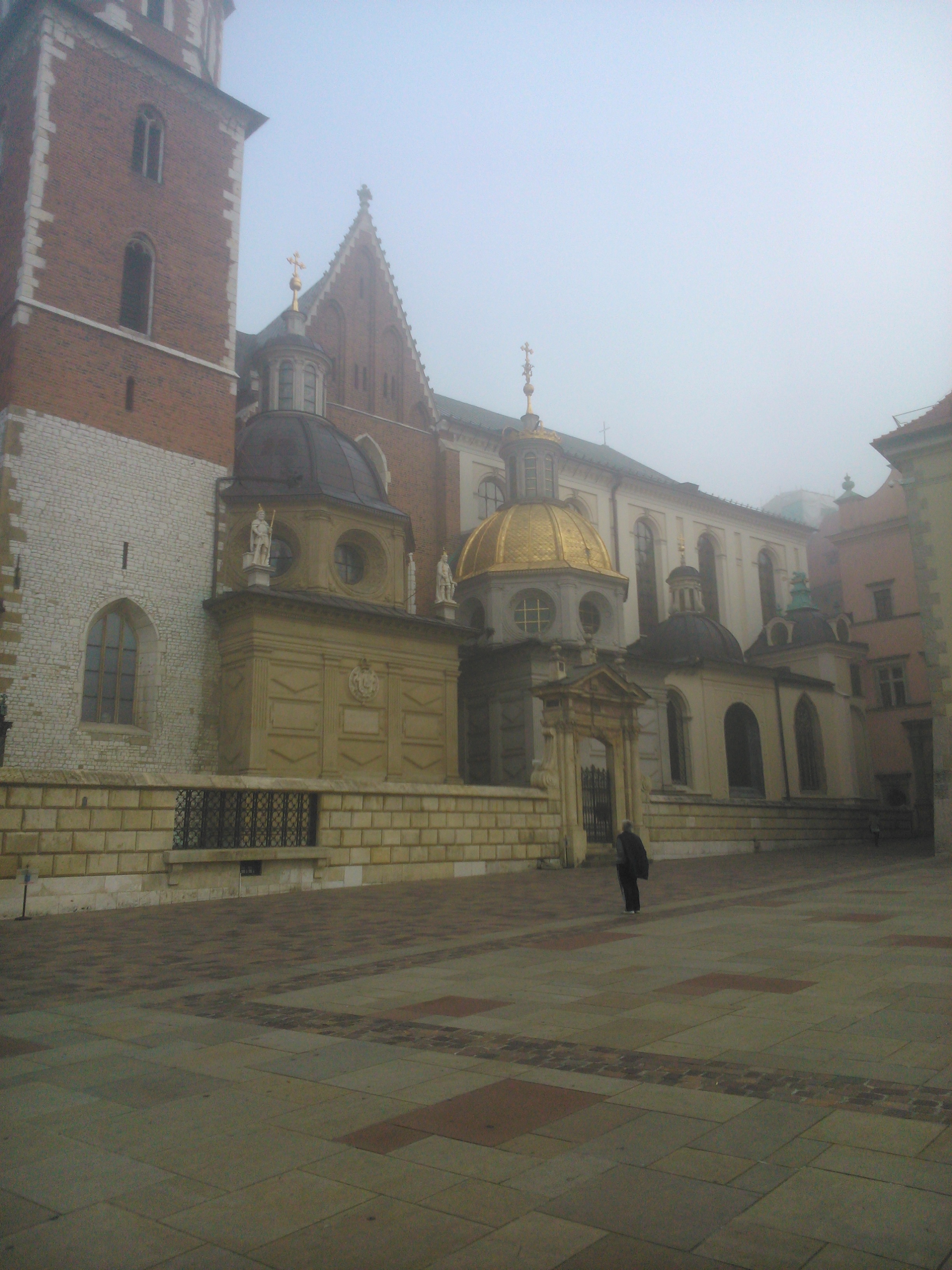Postaliśmy tam trochę i udaliśmy się w kierunku pierwszego punktu naszej wycieczki, zwiedzania Zamku Królewskiego na Wawelu. Po drodze minęliśmy oczywiście słynny posąg Smoka Wawelskiego i oczywiście trzeba było pstryknąć parę zdjęć Smoka we mgle. Ostatni raz przy tym pomniku byłem 20 lat wcześniej, w 1994 roku jako dziecko, na naszej pierwszej wycieczce do Krakowa połączonej ze zwiedzaniem Kopalni Soli w Wieliczce. Pamiętam, że właziliśmy na ten pomnik żeby sobie zrobić zdjęcia i teraz było dokładnie to samo.